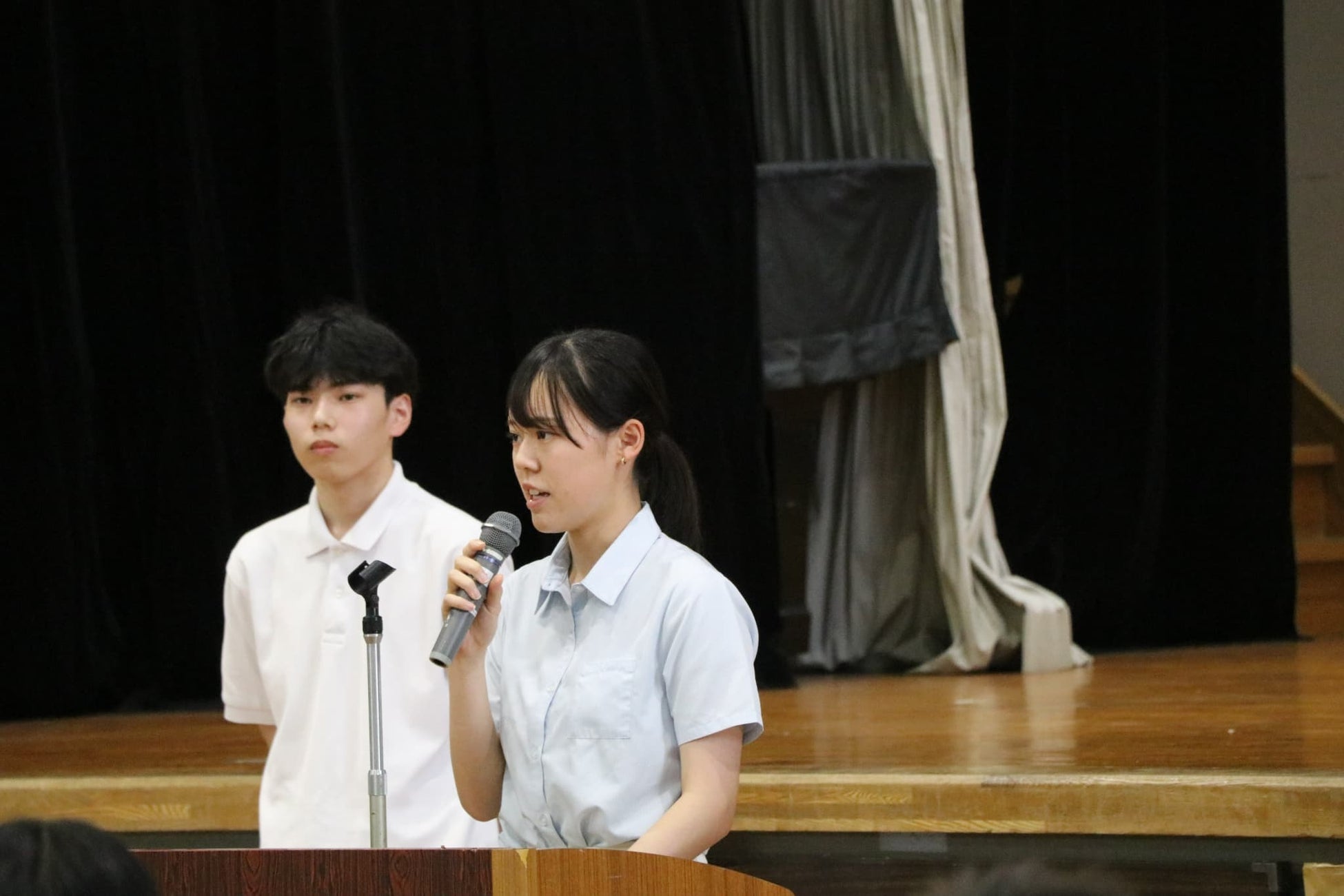 最後に、明治大学博物館学生広報アンバサダーの村松遥香さん(文学部3年)と中野陽登さん(商学部2年)から、博物館で開催中の企画展「女性法曹養成機関のパイオニアー明治大学法学部と女子部ー」に併せて企画した、「明治大学博物館×三淵邸・甘柑荘スタンプラリー」と「三淵嘉子さんが学んだ千代田区マップ」を説明し、両施設への訪問を促しました。