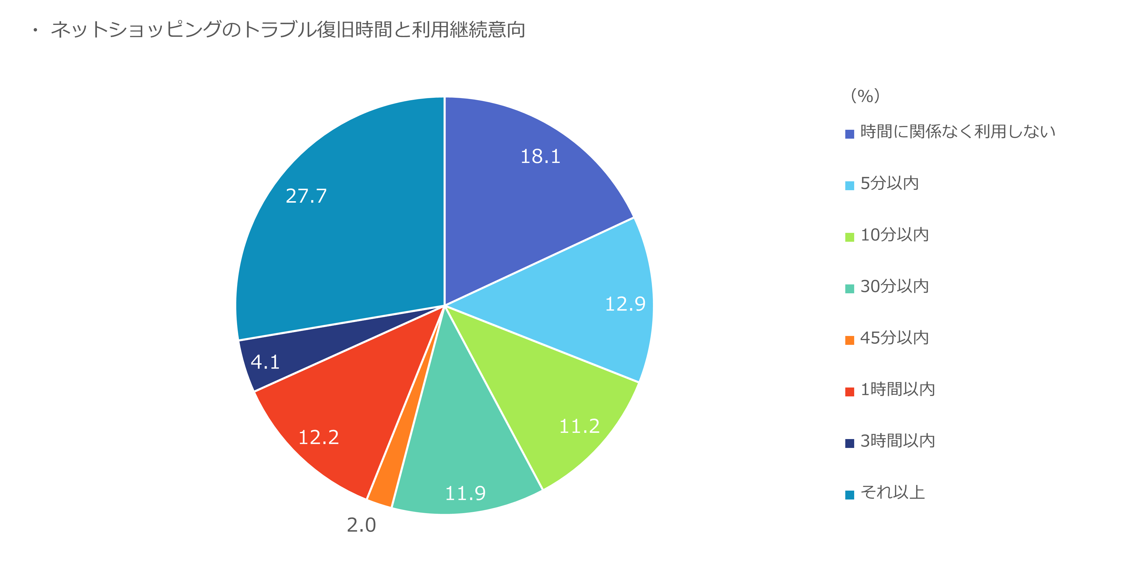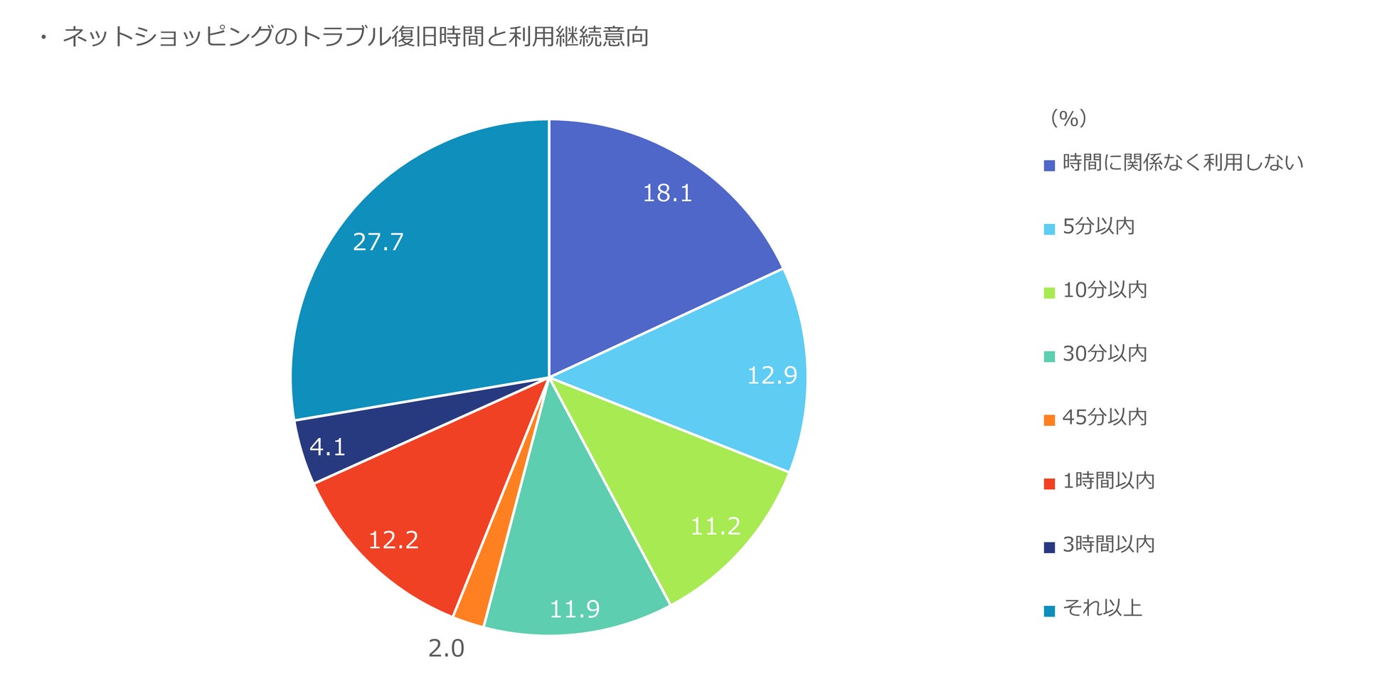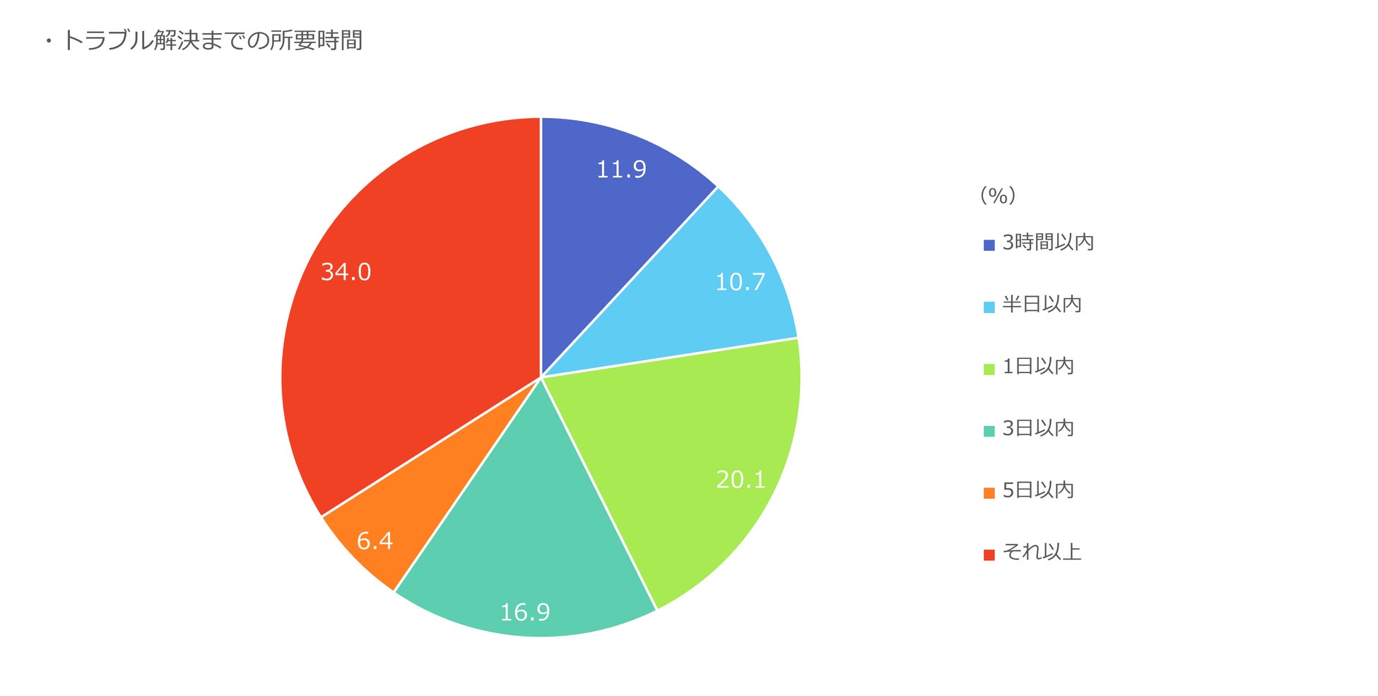 トラブル発生後3時間経過で約7割が利用を中止する一方、3時間で解決できているケースは約1割