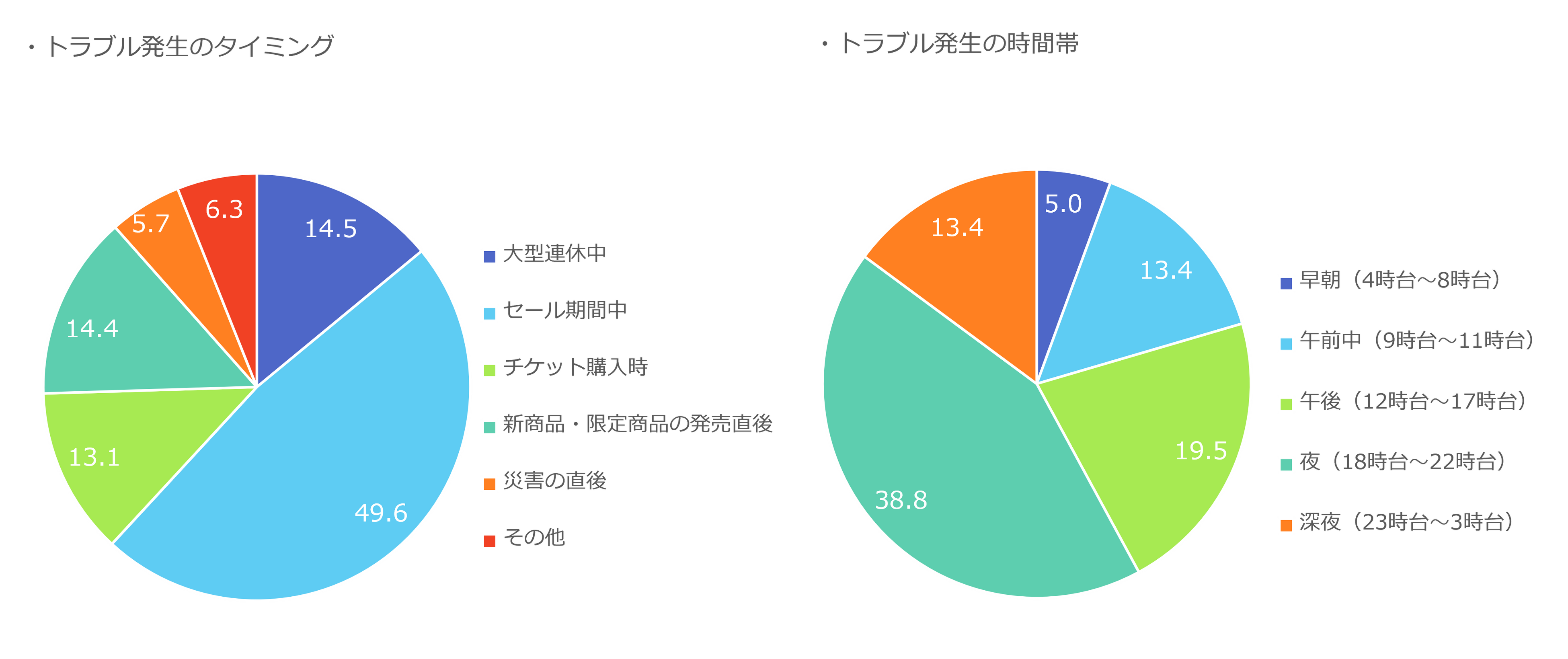 トラブル発生のタイミングは「セール期間中」が最多、時間帯別では18時~22時が約4割