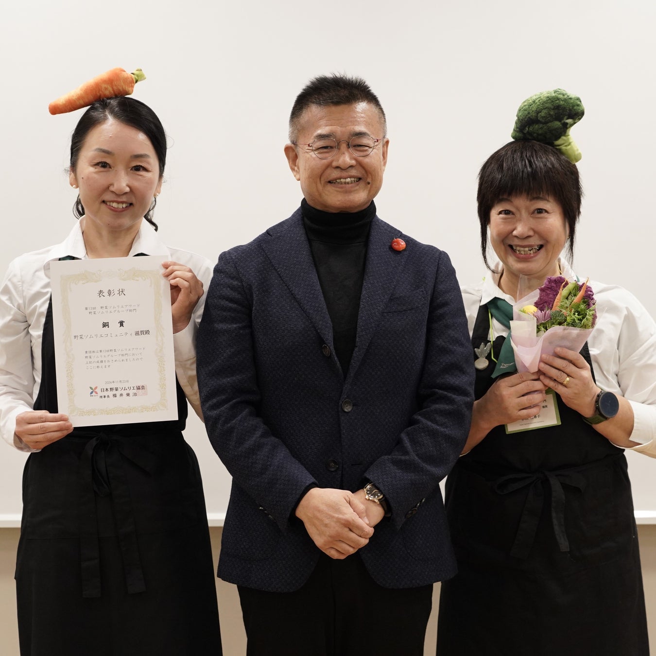 〈受賞コメント〉コミュニティ滋賀は地産地消応援の活動、会員のスキルアップの活動、生活者への広報活動など、月1回以上の活動をコツコツと続けてまいりました。その活動の継続を皆様に評価していただけたこと、とてもうれしく思っています。 これからも近江野菜を未来につなぐため、生産者と生活者の架け橋になるため、そして、野菜ソムリエの活躍のため、さらなるコミュニティ運営に邁進してまいります。