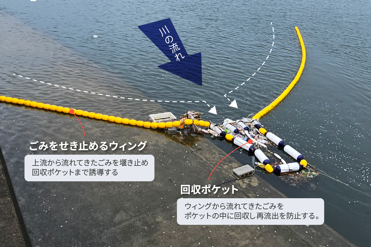 本実証実験では、河川を通じて海へ流出するごみを「川」で効率的に回収することで、海洋への流出抑制に向けた効果検証と、継続運用に向けた課題(設置・撤去、維持管理、運用体制等)の洗い出しを行います。
