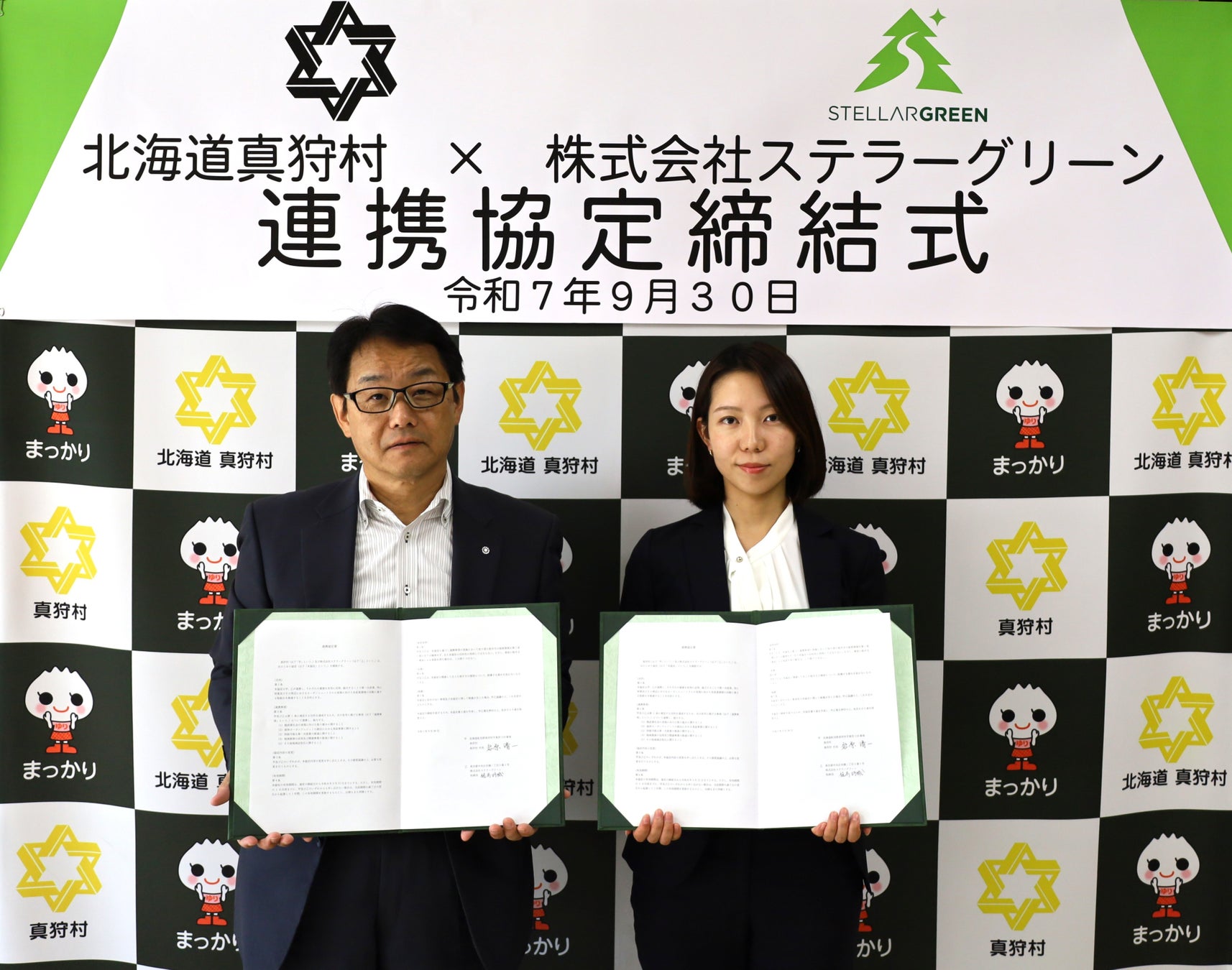 北海道真狩村(村長:岩原 清一、以下「真狩村」)と森林カーボンクレジット創出の支援事業を展開する株式会社ステラーグリーン(本社:東京都中央区、代表取締役社長 兼 CEO:中村 彰徳、以下「ステラーグリーン」)は、2025年9月30日(火)に「カーボンニュートラルの実現に向けた連携協定」を締結しました。