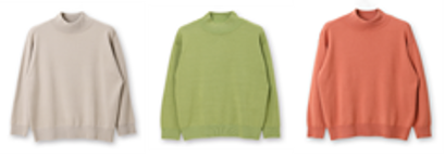 カラーは暗くなりがちな冬のコーディネートの差し色になるように、グレージュ・グリーン・コーラルを用意。コーディネートによってオンでもオフでも使えるニットになっています。
