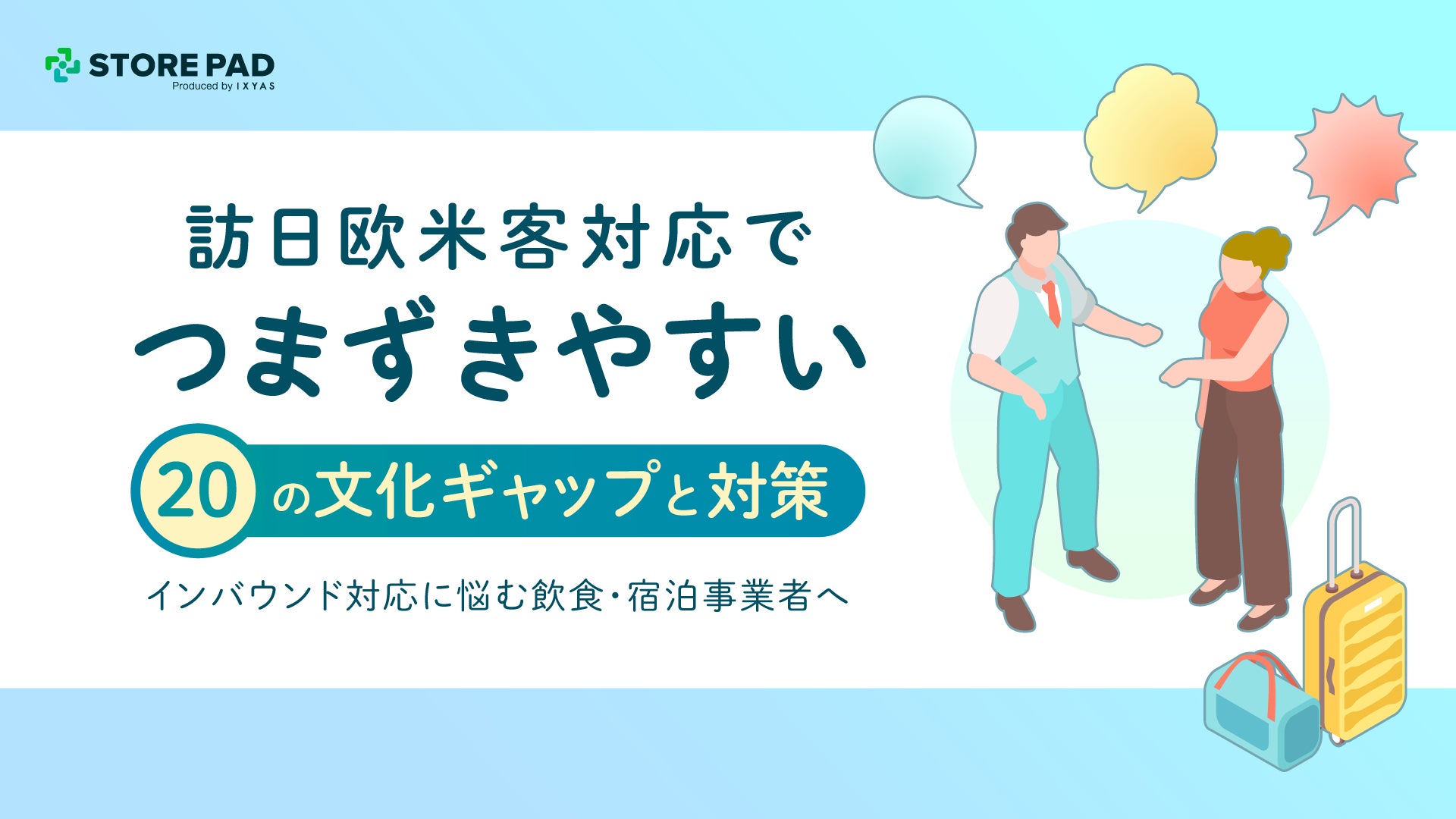 AI搭載型の店舗情報発信・分析プラットフォーム「STOREPAD(ストアパッド)」を提供するイクシアス株式会社(本社:東京都中央区、代表取締役社長 CEO:内藤 崇司)は、飲食・宿泊事業者様が訪日ゲスト(欧米・北米・オセアニア圏)を自信を持って迎えるための新資料『訪日欧米客対応でつまずきやすい20の文化ギャップと対策〜インバウンド対応に悩む飲食・宿泊事業者へ〜』を公開しました。