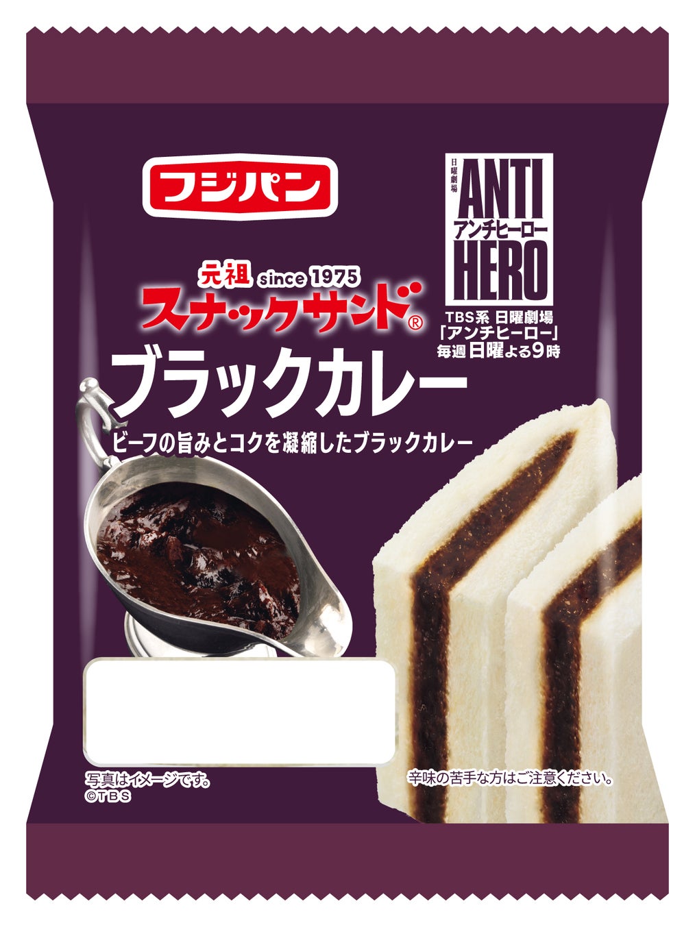 フジパン株式会社(愛知県名古屋市)は、2024年4月14日(日)から放送を開始したTBS系日曜劇場『アンチヒーロー』とのコラボ商品第3弾『スナックサンド ブラックカレー』を6月1日(土)から発売いたします。TBS系日曜劇場『アンチヒーロー』は長谷川博己演じる"アンチ”な弁護士が殺人をも無罪にしてしまう前代未聞の逆転パラドックスエンターテインメントです。