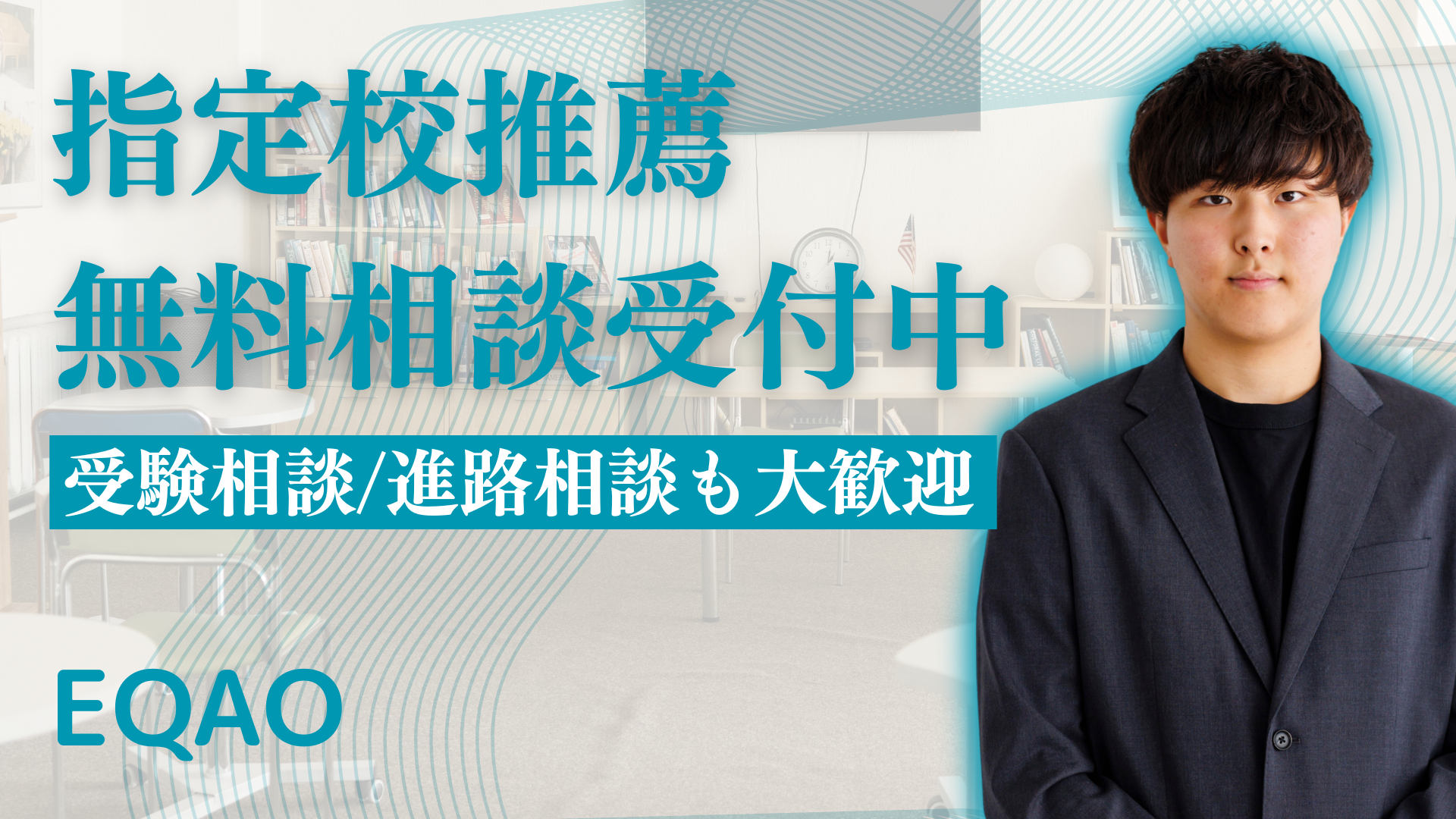 指定校推薦対策に関する相談受付開始!推薦入試専門塾EQAOが指定校推薦でお悩みの受験生や保護者の方を対象に指定校推薦/総合型選抜に関する助言を無料で行います。推薦入試対策はEQAOにお任せください。