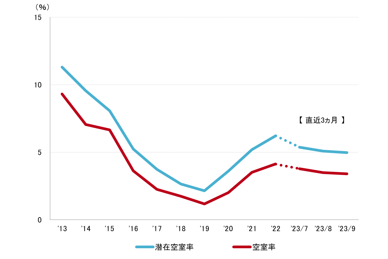 潜在空室率 2021年10月以来の4%台へ低下