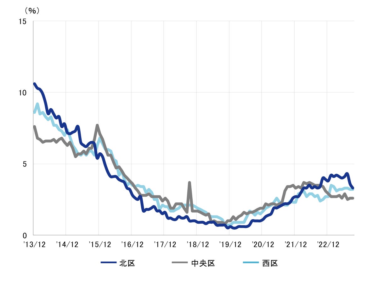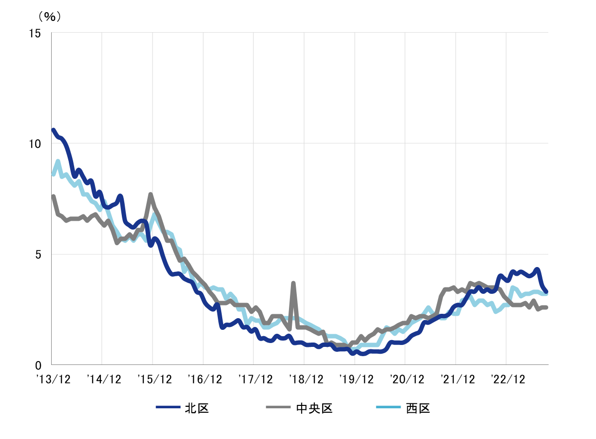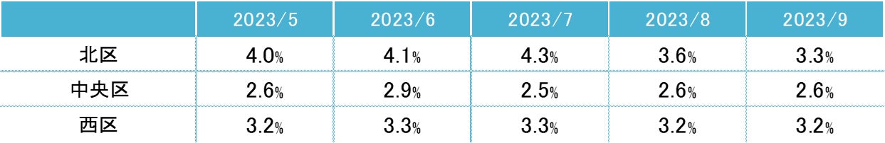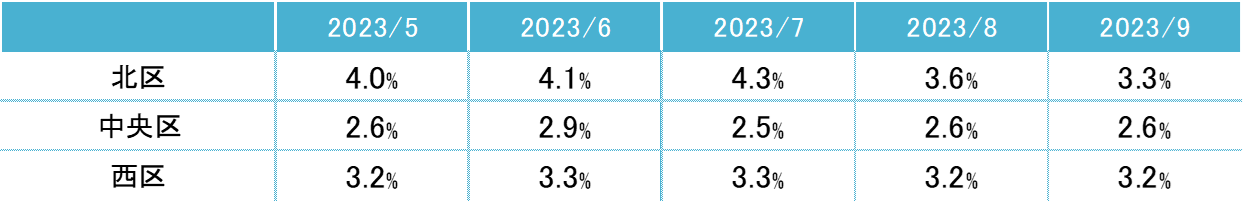 「北区」2ヵ月連続で低下し、3%台前半へ