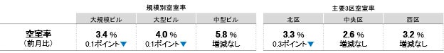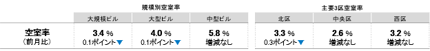 大規模ビル 主要3区 空室率:「北区」2ヵ月連続で低下し、3%台前半へ