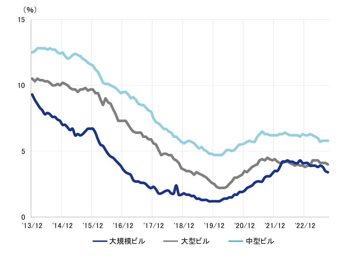 規模別 空室率:「大型」低下し、3%台が目前に