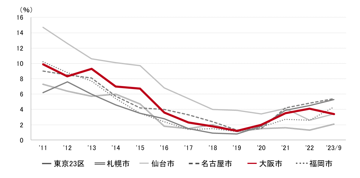 大阪市 大規模ビル 主要3区 空室率