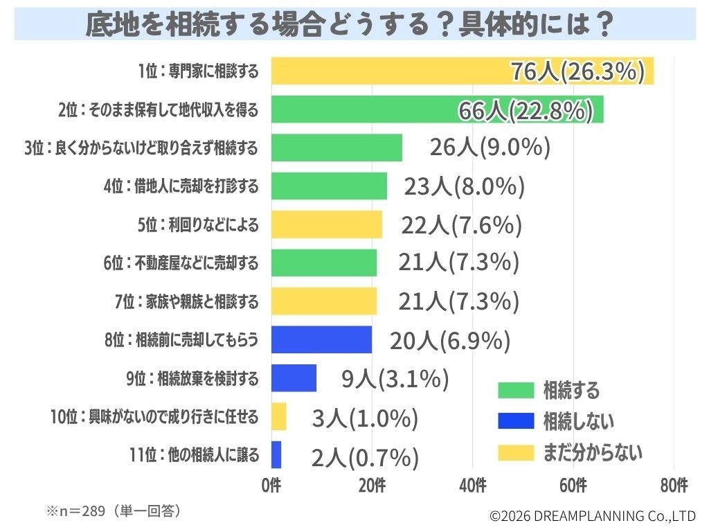 「特に問題がなければそのまま相続する。継続的にコストがかかるようであれば、プラスになるよう、専門家に相談する。土地は絶対に手放さない。(30代女性)」