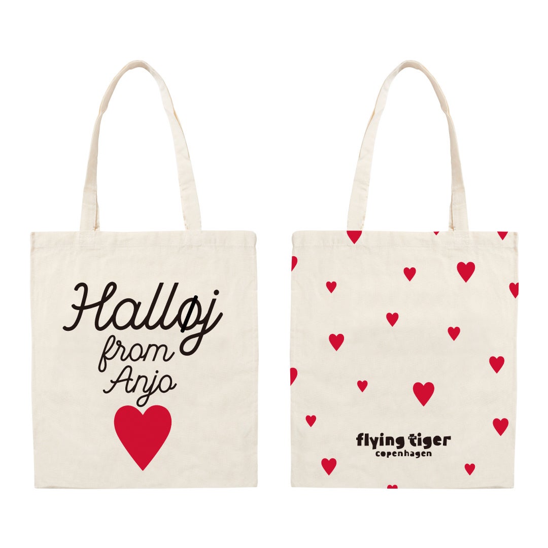限定アイテム『ストアリミテッドバッグ』オープン日 先着100名様にプレゼント!Flying Tiger Copenhagenでは、各店限定の『ストアリミテッドバッグ』を販売しています。〈ららぽーと安城ストア〉では、デンマークの人たちが大好きなモチーフ”ハート”と、メッセージ“Halløj from Anjo” (デンマーク語で「安城からこんにちは!」)を配したバッグを展開。4/18(金)のオープン日、先着100名様に、この『ストアリミテッドバッグ』をプレゼントします。