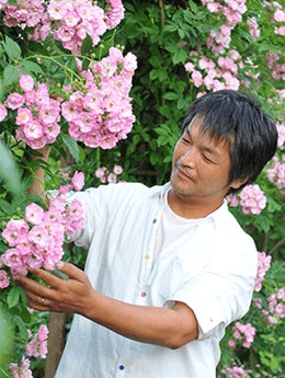 小山内 健(おさない けん)先生は、バラの栽培、品種の鑑定などに携わる、京阪園芸(けいはん)のバラのスペシャリストです。 TVチャンピオン「全国バラの花通選手権」2回制覇というすごい 経験もあり、ローズセミナーや講演会、テレビ出演、執筆など、 各方面で活躍されています。 その経験の豊富さから園芸業界では 「バラ鑑定士」、「薔薇のソムリエ」などとも呼ばれています。