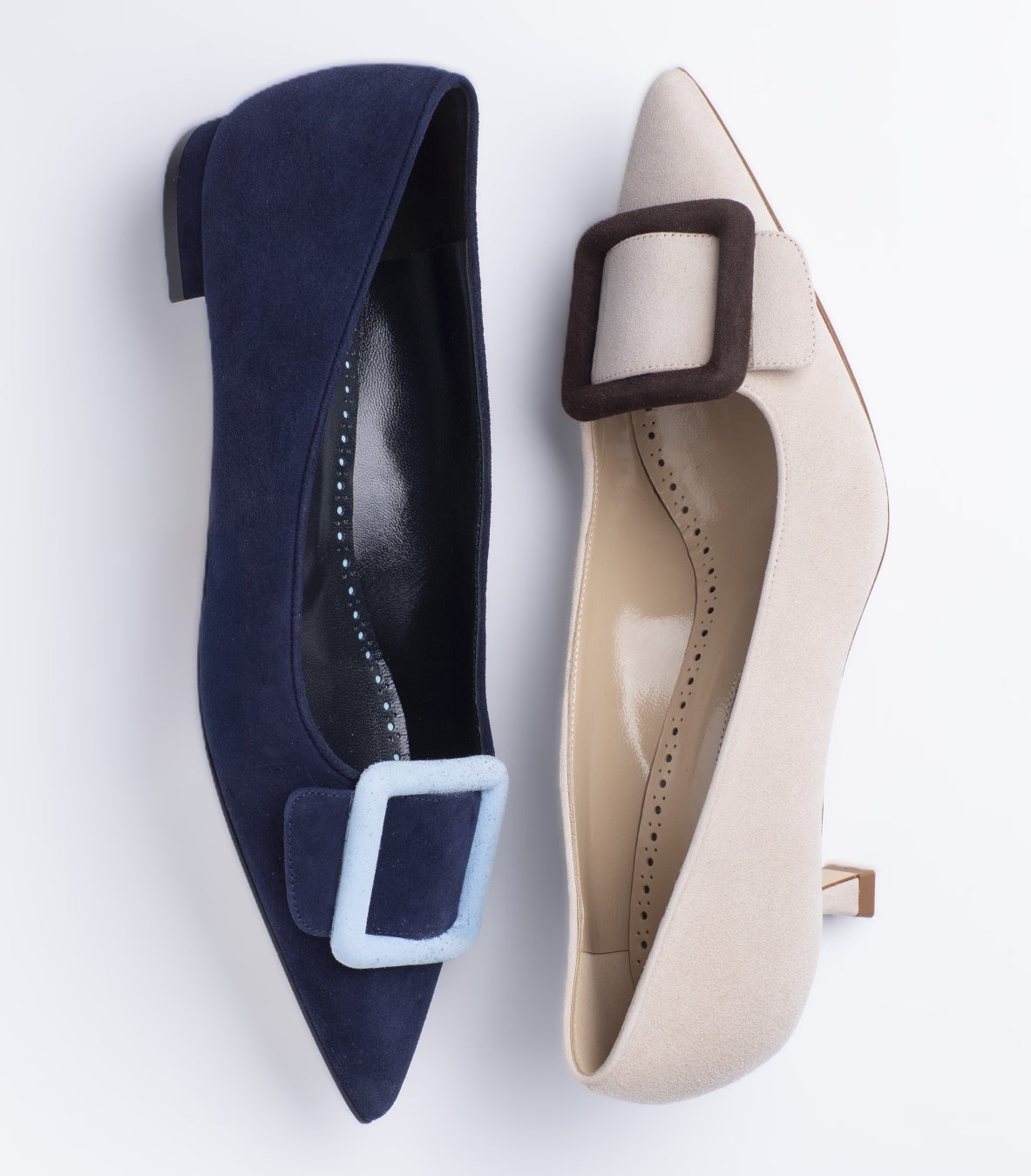 今シーズン登場する日本限定モデルは、異なる表情を持つ2つのカラーリングで登場します。ベージュ×ブラウンのヒールタイプは、温かみのあるトーンが落ち着いた上品さを引き立て、シーンを問わずスタイルに知的なアクセントを添えます。一方、ネイビー×ライトブルーのフラットタイプは、深みのあるネイビーに軽やかなライトブルーを組み合わせた配色が、都会的で洗練された印象をもたらし、日常の装いを鮮やかにアップデートします。