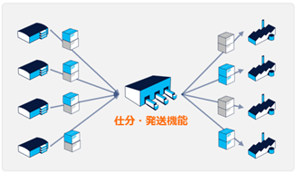 荷受けした商品を、検品・仕分けを行った後、そのまま配送先へ出荷するオペレーション。倉庫で商品を保管しないため、荷受け~配送までの時間が短い。