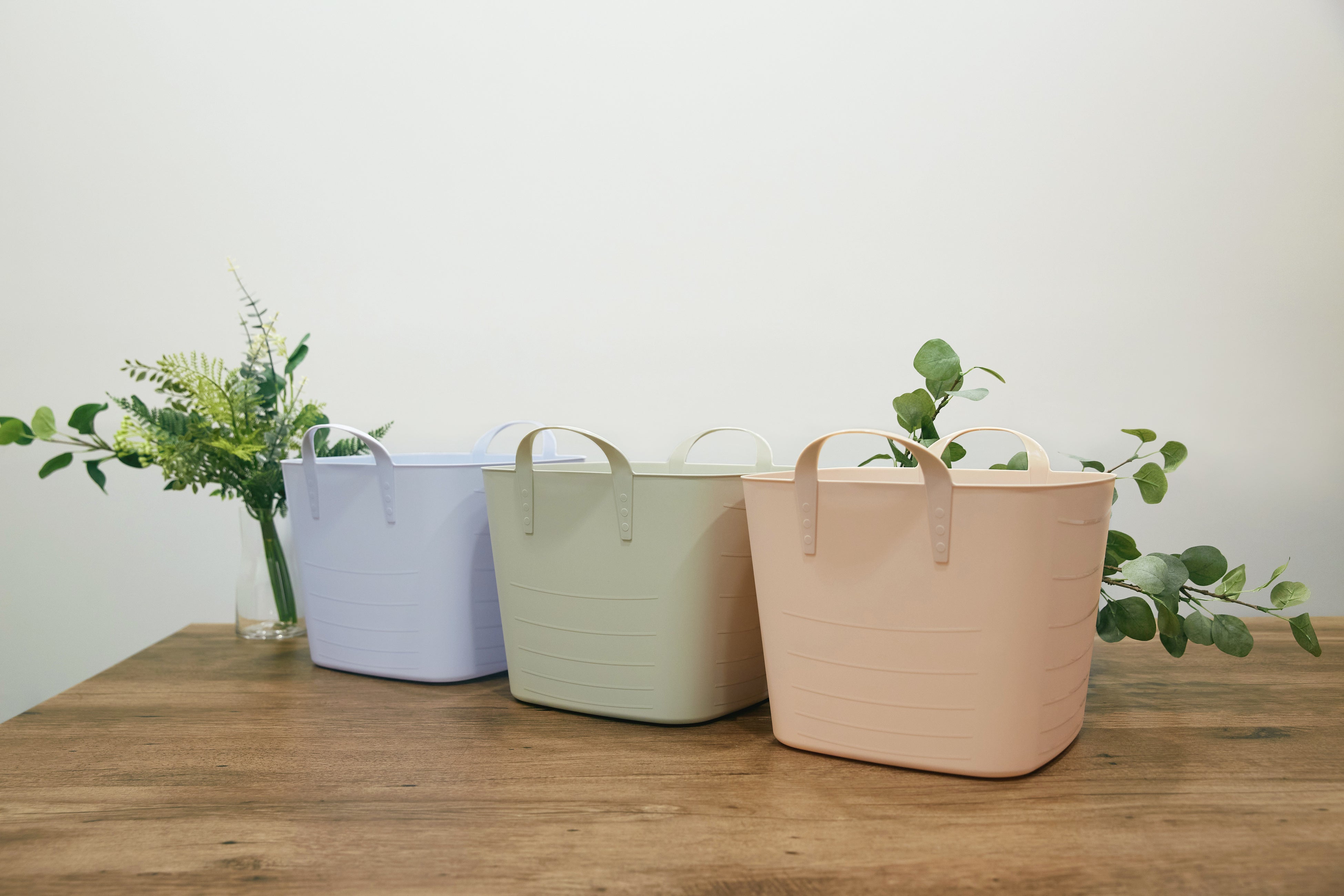 ブックオフグループホールディングス株式会社(本社:神奈川県相模原市、代表取締役社長:堀内康隆、以下ブックオフ)の子会社であるブックオフコーポレーション株式会社(同)は、CD・DVDの廃棄を削減するため、BOOKOFF店舗で処分されたCD・DVDをリサイクルし、再生プラスチック資材「CDプラ」の製造に取り組んでいます。このたび、「CDプラ」を使ったデザイン商品の第2弾として、収納雑貨の製造販売を行うスタックストー株式会社(本社:東京都渋谷区、代表取締役:森田徹平、以下スタックストー)とのコラボレーションにより、同社の商品「baquet(バケット)」を「CDプラ」で製作、3種のくすみカラーによるオシャレな「サステナブルバケット」としてBOOKOFFの一部店舗にて販売を開始いたしました。