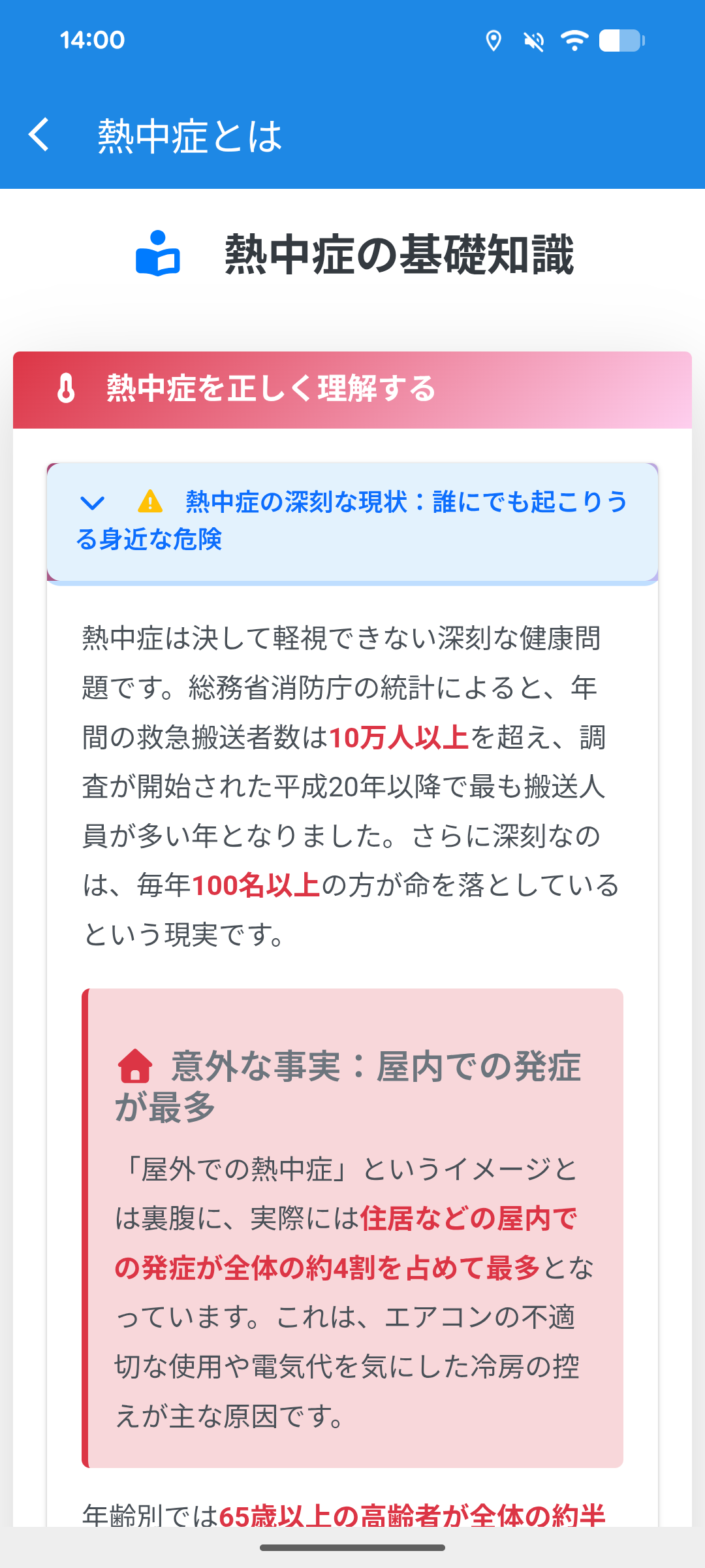 緊急時の処置手順や熱中症予防に関する教育コンテンツを提供