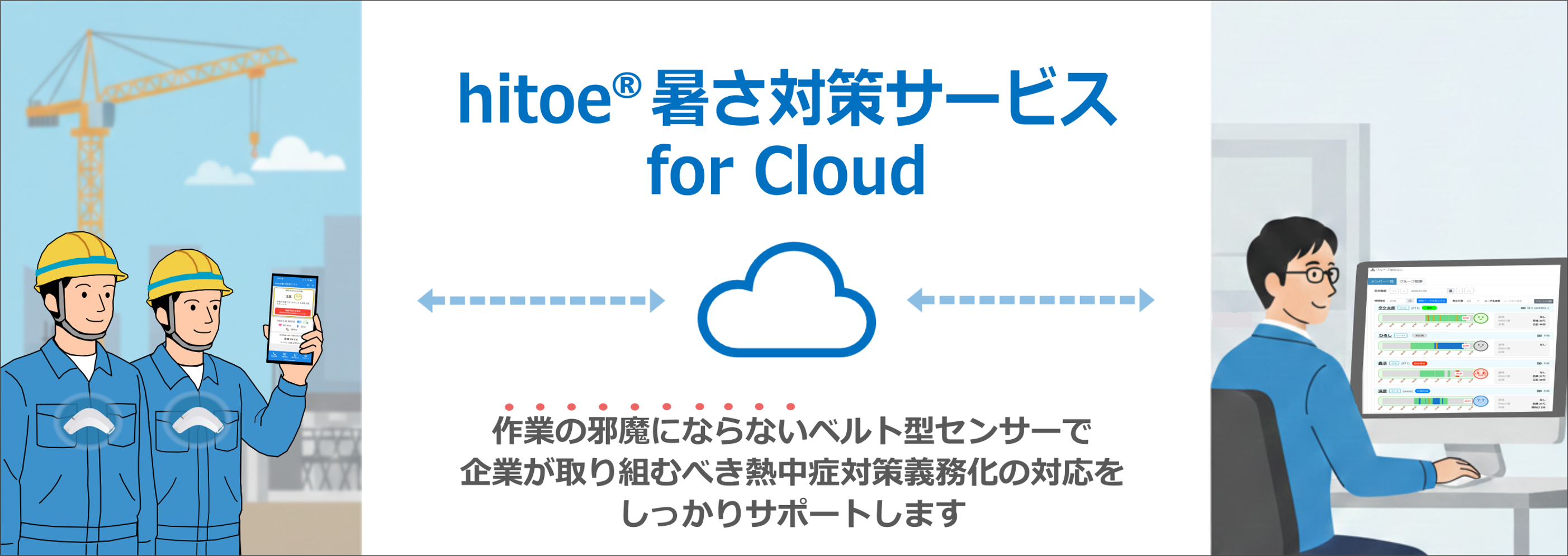 「hitoe®暑さ対策サービス for Cloud」は、多様な現場の課題に対応するための継続的な機能拡充により、暑熱環境で働くすべての人が健康に配慮し安心できる環境で働ける社会の実現に寄与してまいります。