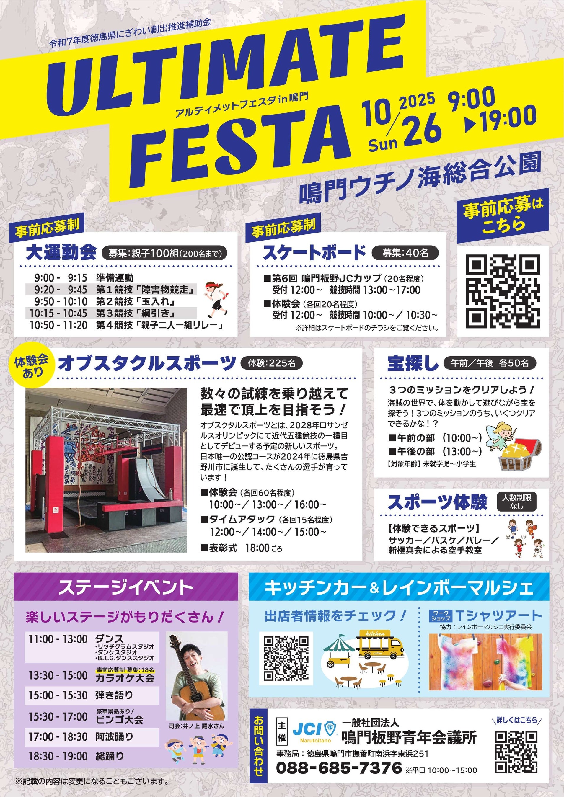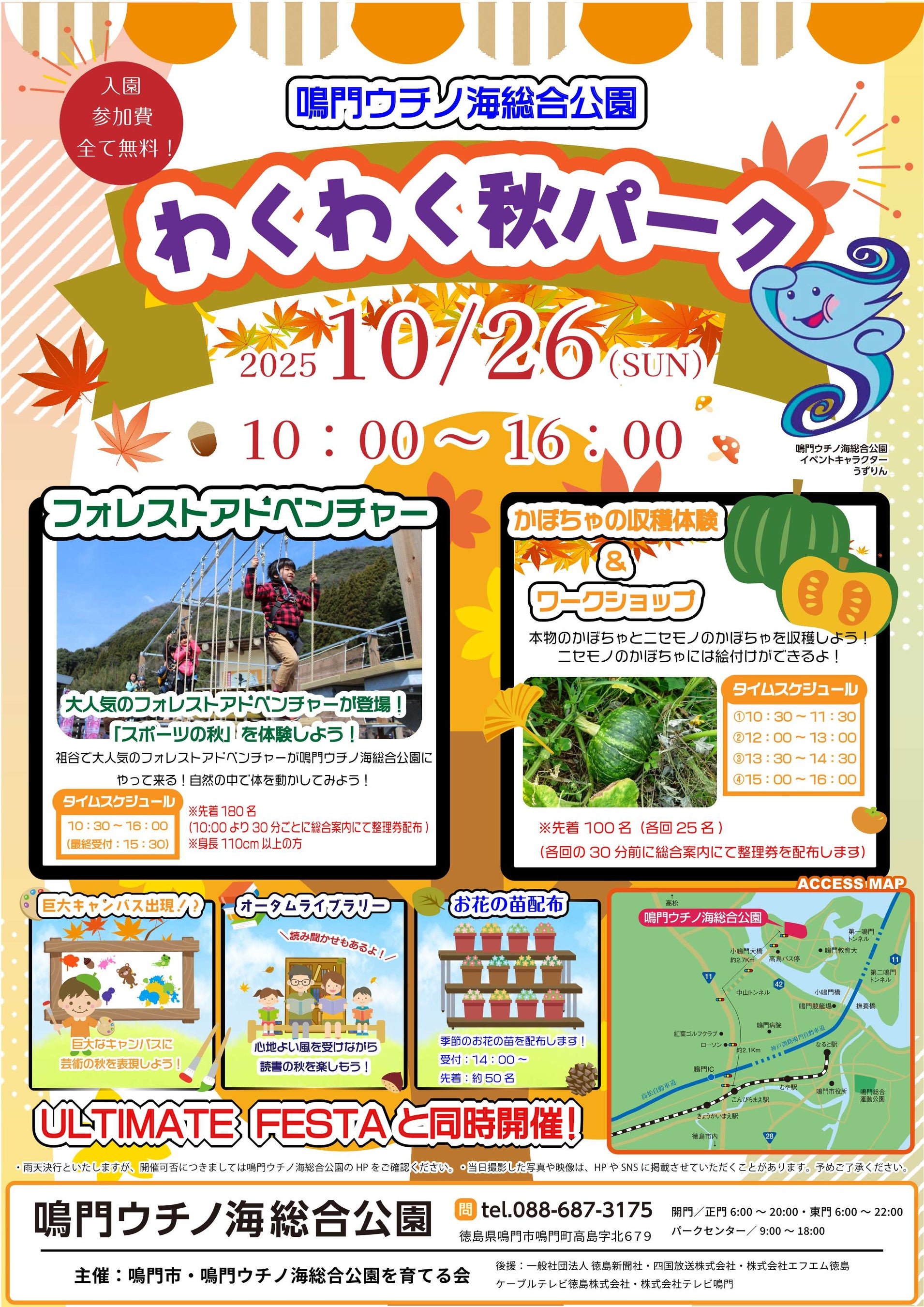 【徳島県 鳴門市役所】「鳴門ウチノ海総合公園 わくわく秋パーク」「ULTIMATE FESTA」 同時開催について