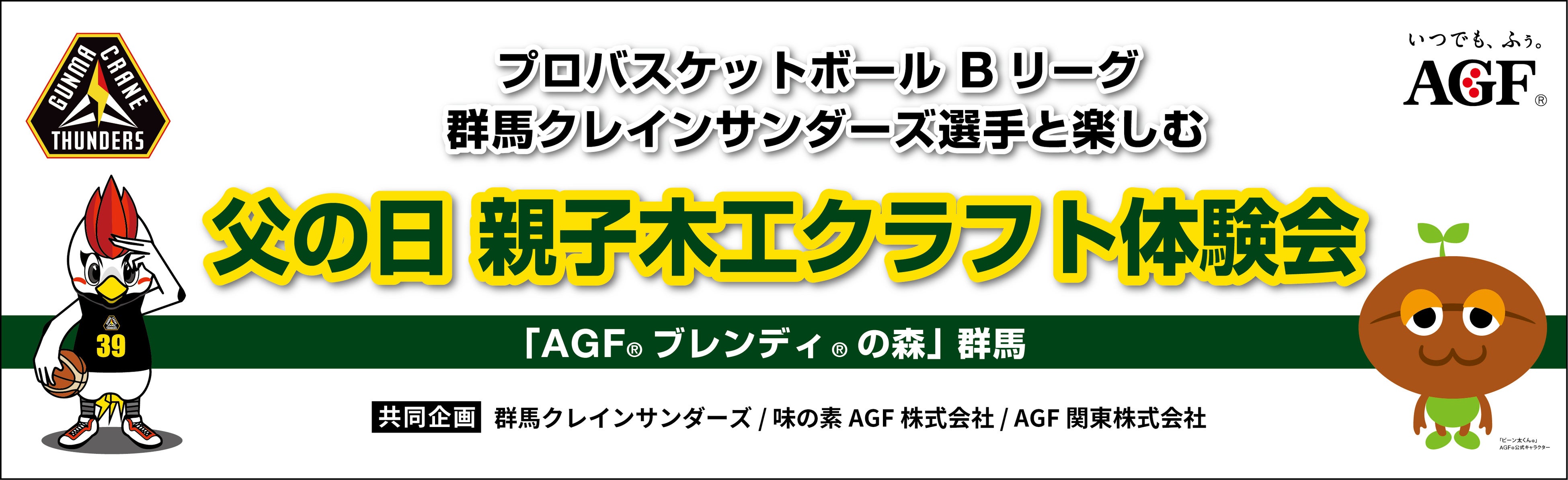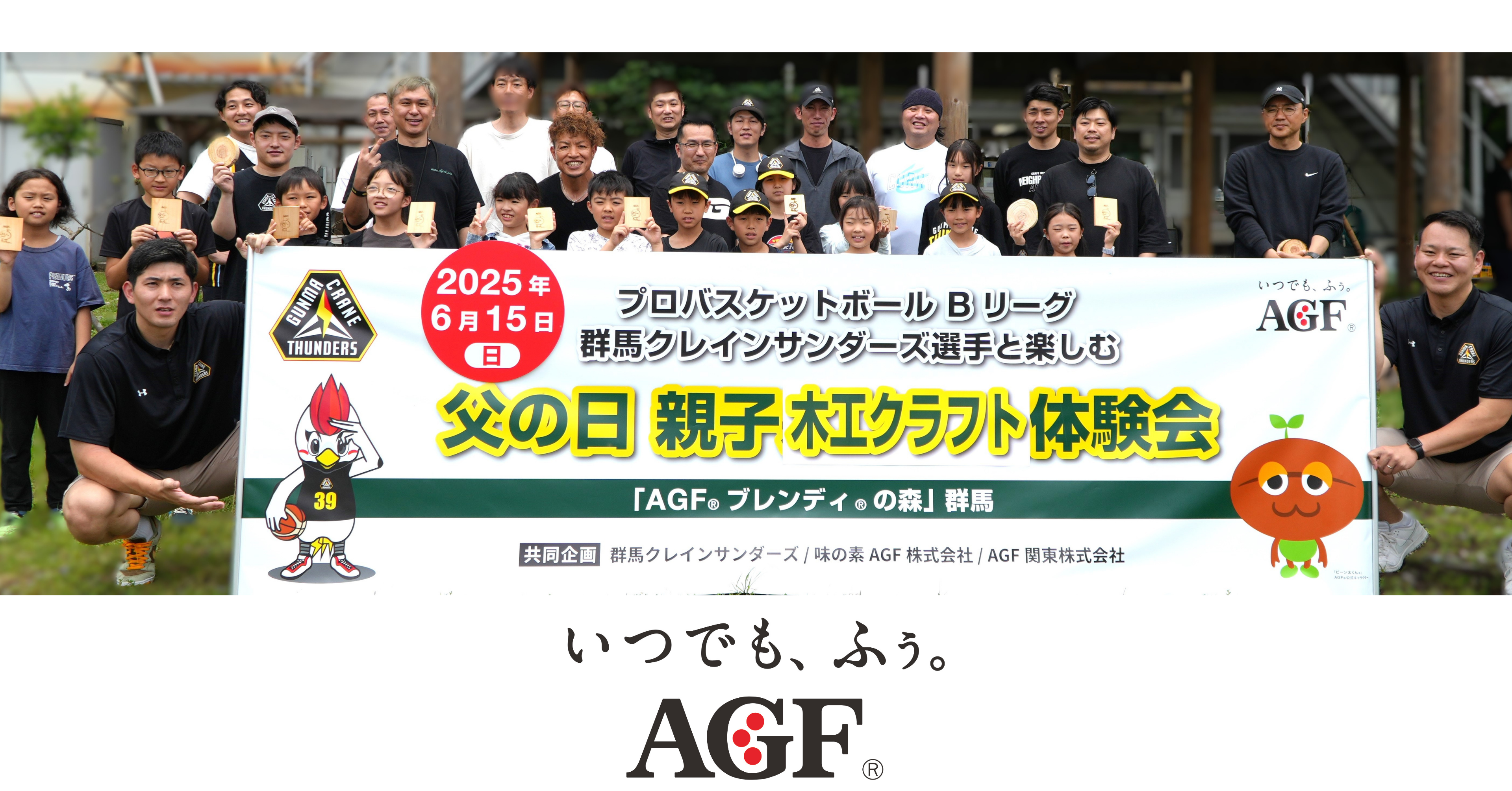 「ココロとカラダの健康」への貢献を目指す味の素AGF株式会社(代表取締役社長:島本 憲仁 以下、味の素AGF)は、「群馬クレインサンダーズ」を運営する株式会社群馬プロバスケットボール コミッション(代表取締役社長:阿久澤 毅、所在地:群馬県太田市)と、地域社会貢献活動第二弾として、父の日に一般公募参加者14組28名の親子を招いた「親子木工クラフト体験会」を2025年6月15日(日)、「サンデンフォレスト」(前橋市粕川町)にて開催しました。