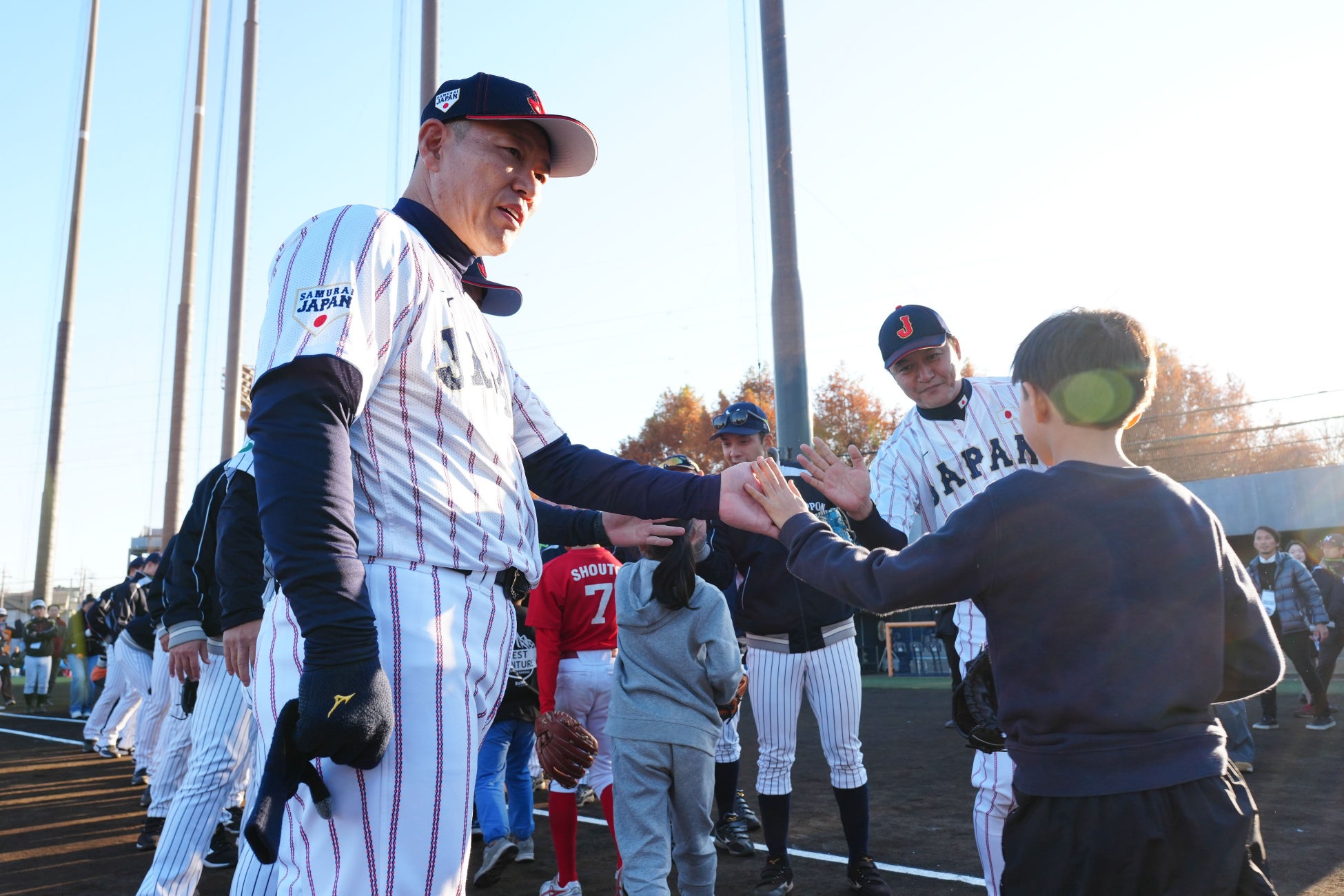 当日参加した子どもたちは、井端監督、金子コーチ、梵コーチ、日本通運野球部の指導のもと、バッティング・キャッチボール・守備などの練習に取り組みました。世界の舞台で戦う侍ジャパンの指導者や、社会人野球の第一線で活躍する選手から直接指導を受ける貴重な機会に、子どもたちは真剣に耳を傾けました。