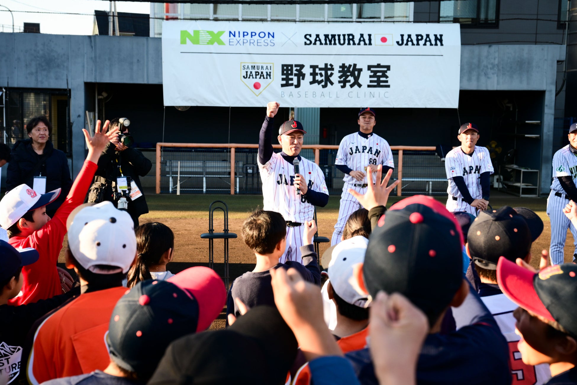 こうした背景のもと、NXグループは子供たちに「世界にチャレンジすることの重要性や、あきらめない気持ち、その心構え」を伝えるため、世界一を目指す侍ジャパンから特別講師3名を招き、日本通運野球部とともに、第7回目となる野球教室を開催しました。