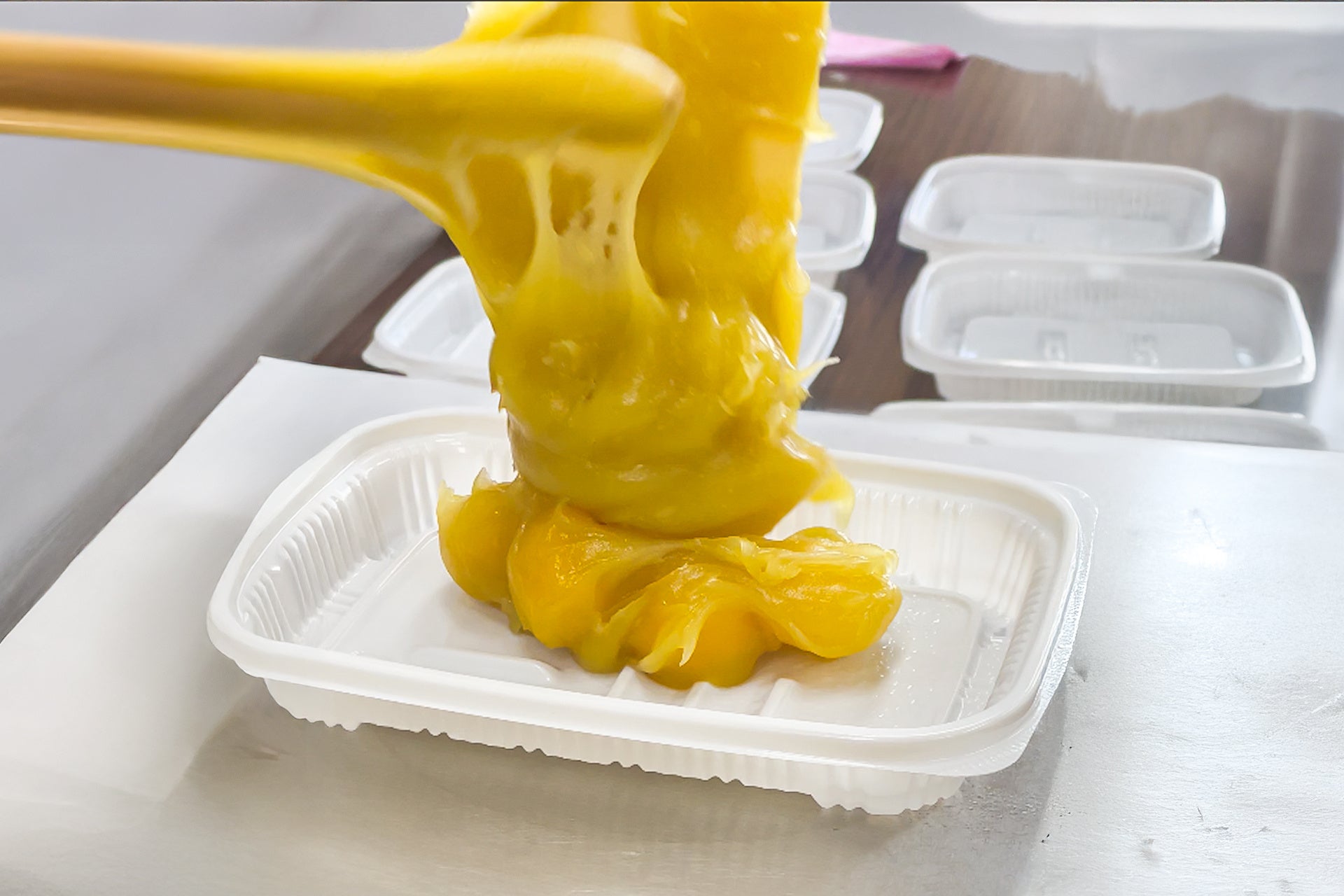 丁寧に蒸されたもち米は、一粒一粒がふっくらと立ち、つややかな光沢を放ちます。これは、蒸篭蒸しだからこそ実現できる、米の美しさです。