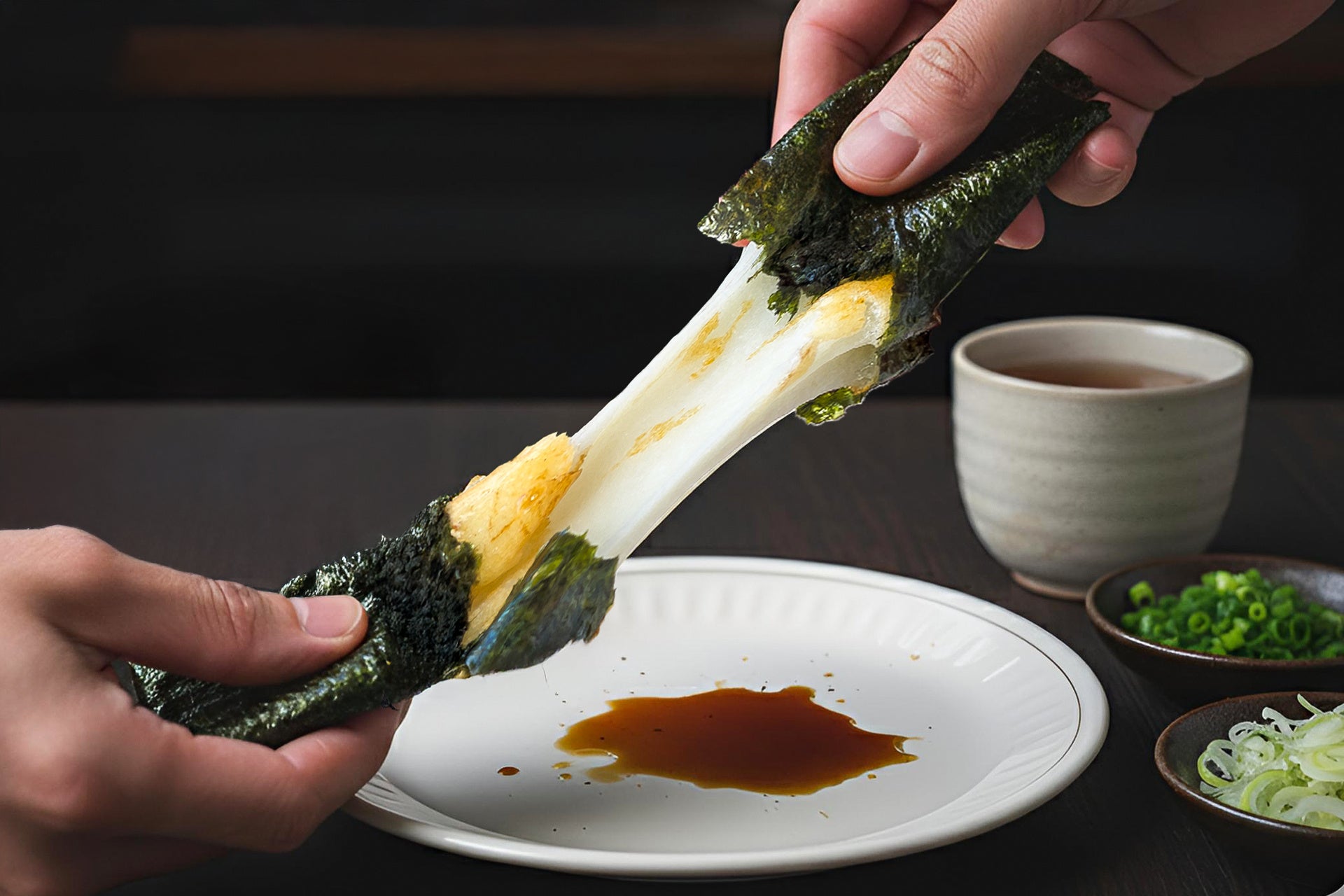 海苔などの海産物は、自然の恵みや豊穣の象徴。磯部餅は、海と山、両方の恵みに感謝し、一年の実りと生活の安定を願う食べ方です。また、海苔の黒色は「守る色」とされ、邪気を防ぐとも考えられてきました。香ばしく焼き上げたマンゲツモチは、外はこんがり、中はもっちり。噛んだ瞬間に広がるお餅の自然な甘みとコクが、海苔の旨みと合わさり、噛むほどに味わいが深まります。