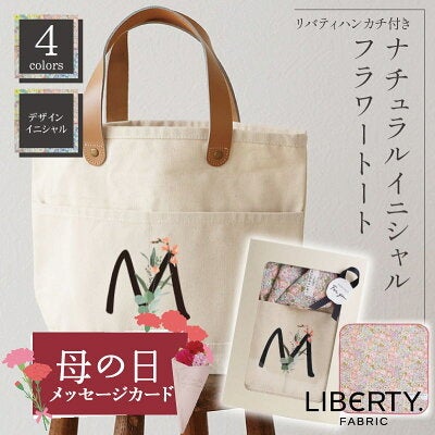 リバティ ハンカチ 付き ナチュラル イニシャル フラワー トート