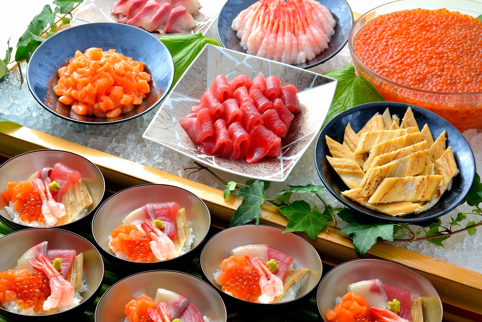 今年は、開業70周年を記念し、半世紀以上に渡りご提供している「米茄子の鴫炊き」や、特製ビーフシチューなどのホテル椿山荘東京の伝統の味のほか、約10年ぶりに登場する「銀鱈の西京漬け」や、「冬瓜釜の冷やし煮物」など人気メニューが復活。また、サーロインローストビーフやお好みで盛り付けられる海鮮ちらし寿司、そして黄色いタピオカで蛍の光を表現し、とろろを東京雲海に見立てた「とろろ蕎麦」など、和・洋・中からスイーツまでバラエティ豊かなメニューをご堪能いただけます。