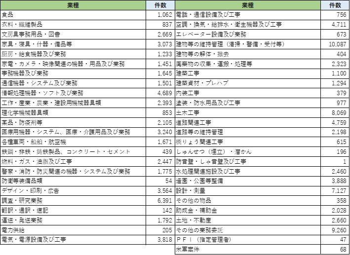 各機関が公示する入札案件・公募案件を集計したものです。