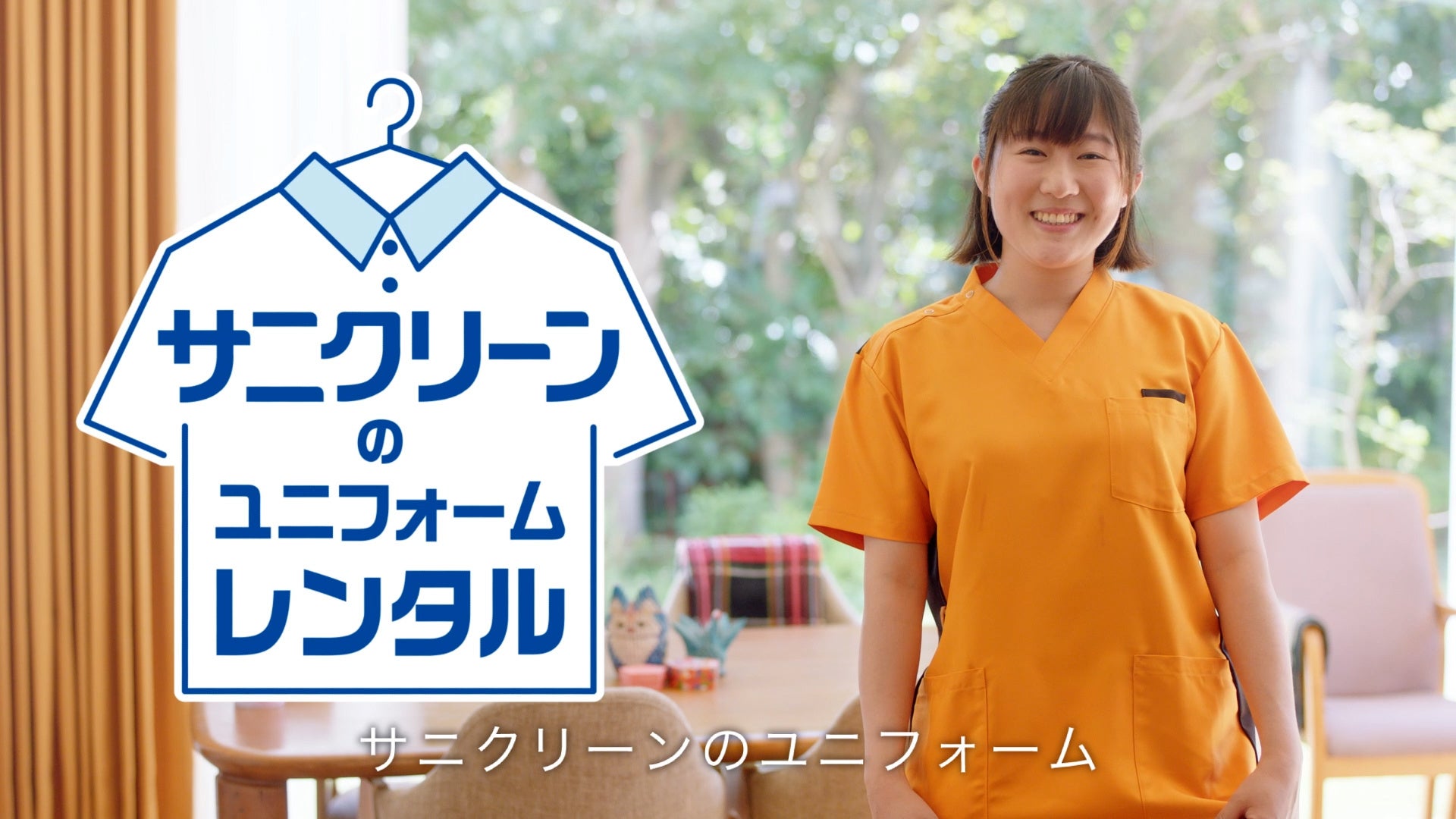 4 年ぶりに制作されたユニフォームレンタルの紹介CM です。飲食店と介護施設の現場のみなさんに、サ