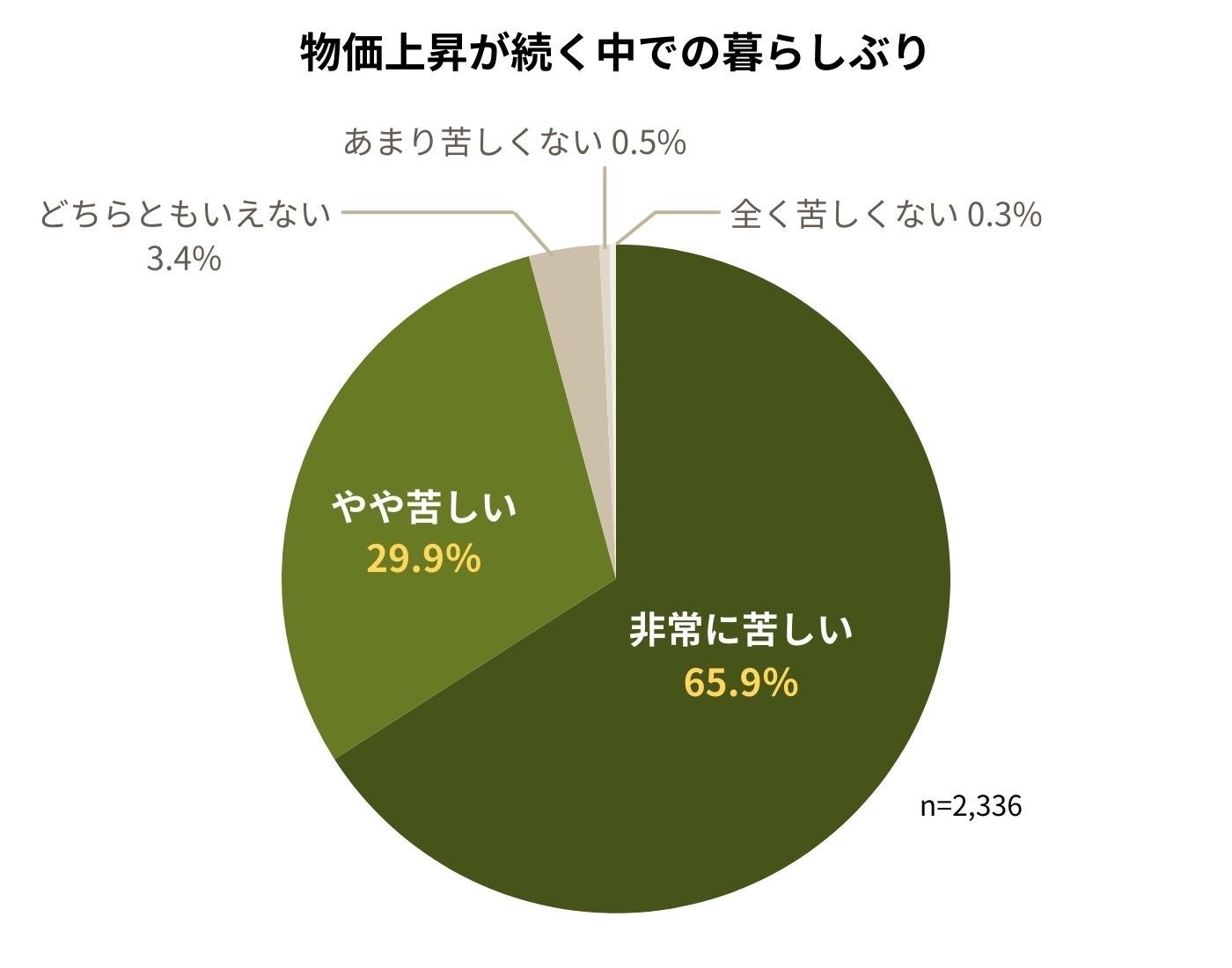 物価上昇が続く中での暮らしぶりを問う質問において、「非常に苦しい」「やや苦しい」と回答した人の割合は計95.8%にのぼりました。