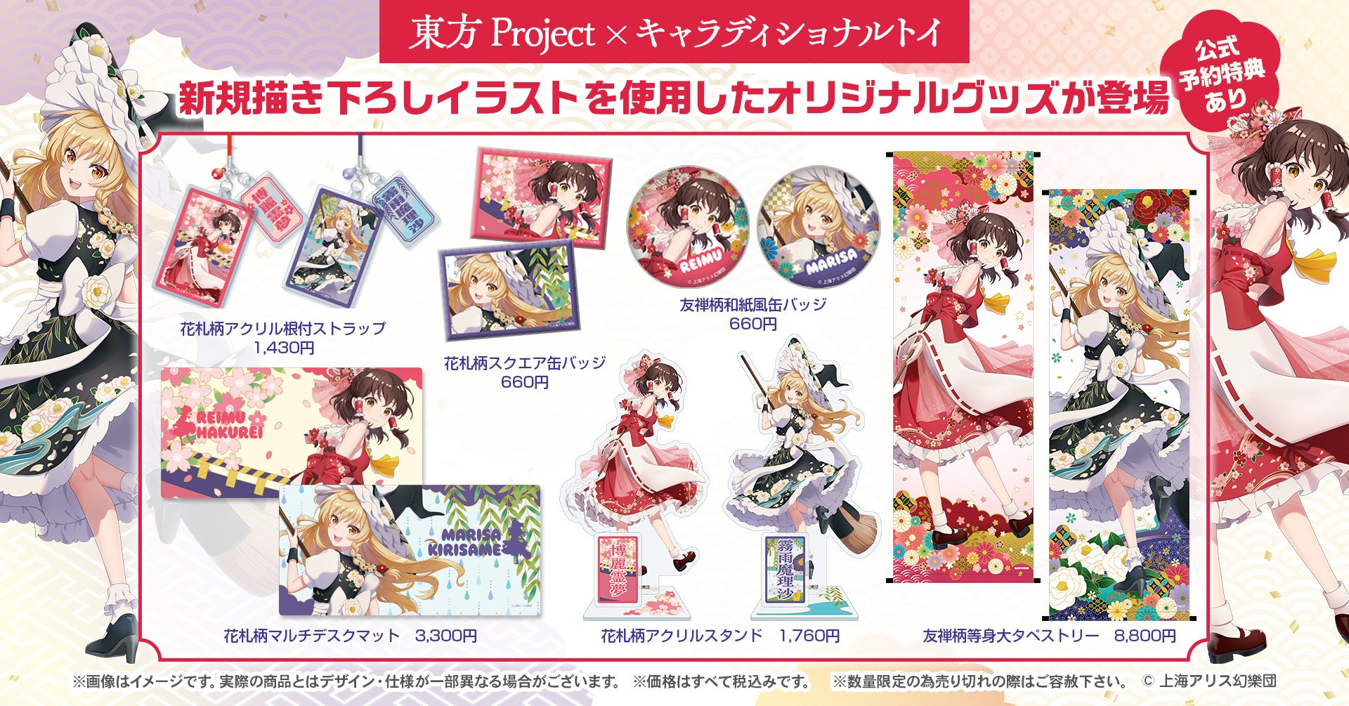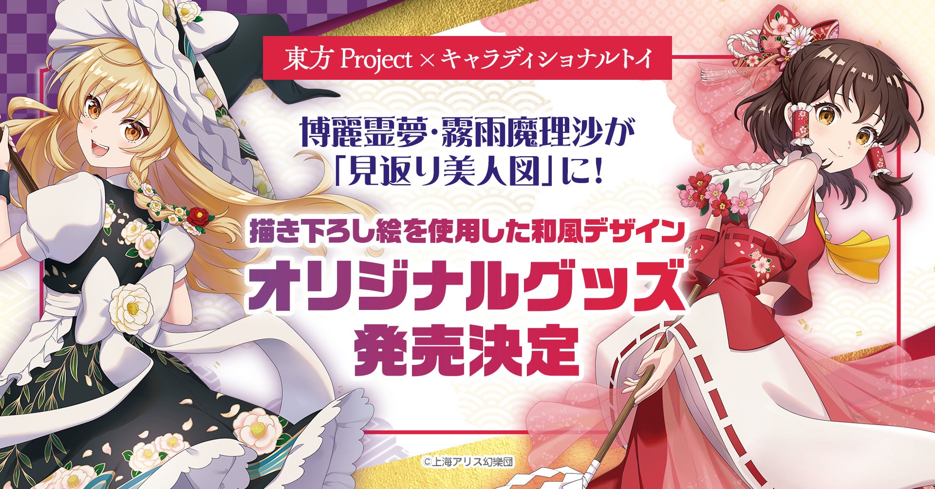 株式会社トキオ・ゲッツ(本社:東京都渋谷区、代表取締役:小笠原 亨 以下「当社」)は、「キャラクター×日本の伝統」をテーマに展開するブランド「キャラディショナルトイ」より、「東方Project」のオリジナルグッズを発売いたします。“見返り美人”をイメージした博麗霊夢・霧雨魔理沙の新規描き下ろしイラストを使用した和風オリジナルデザインをお楽しみください。