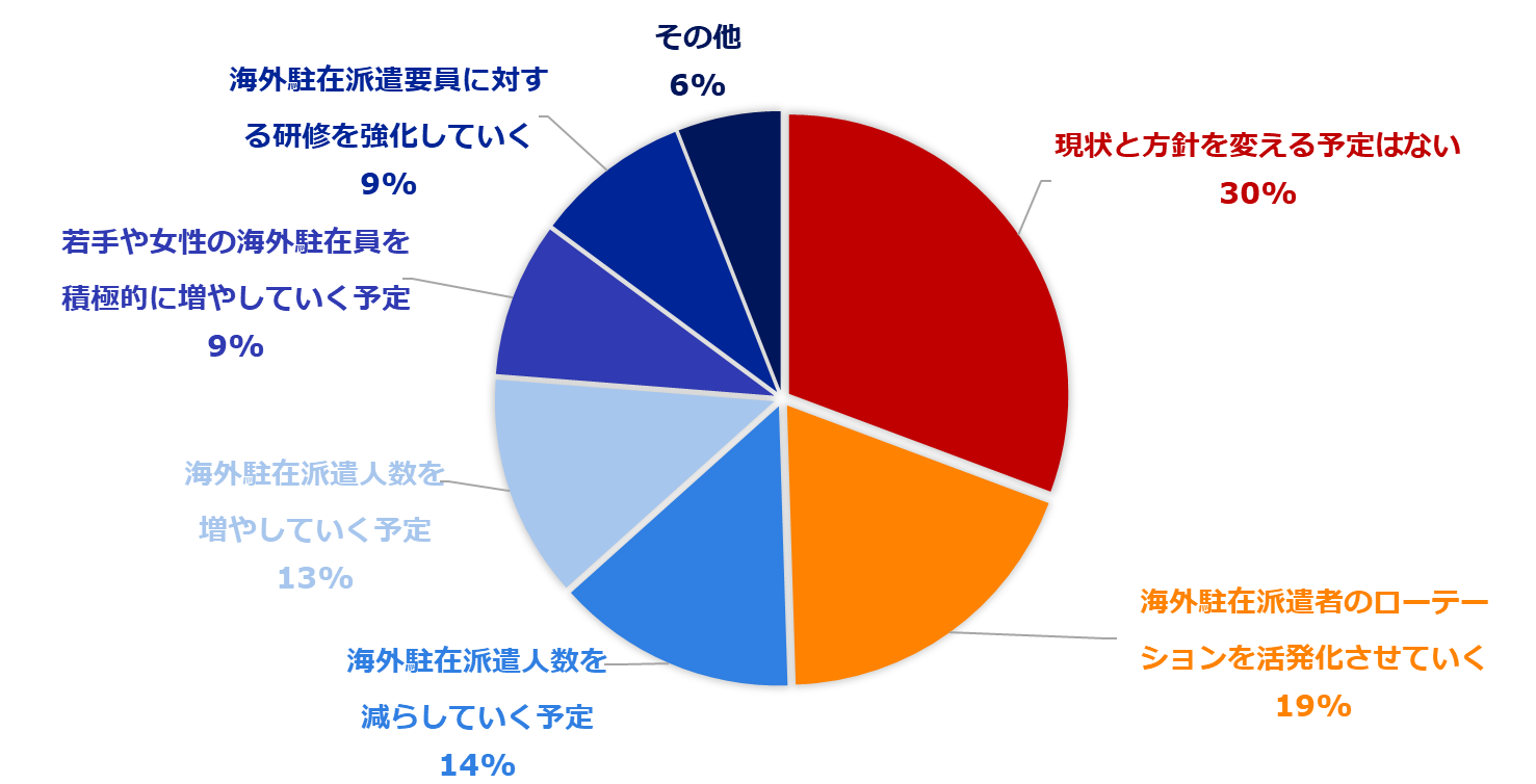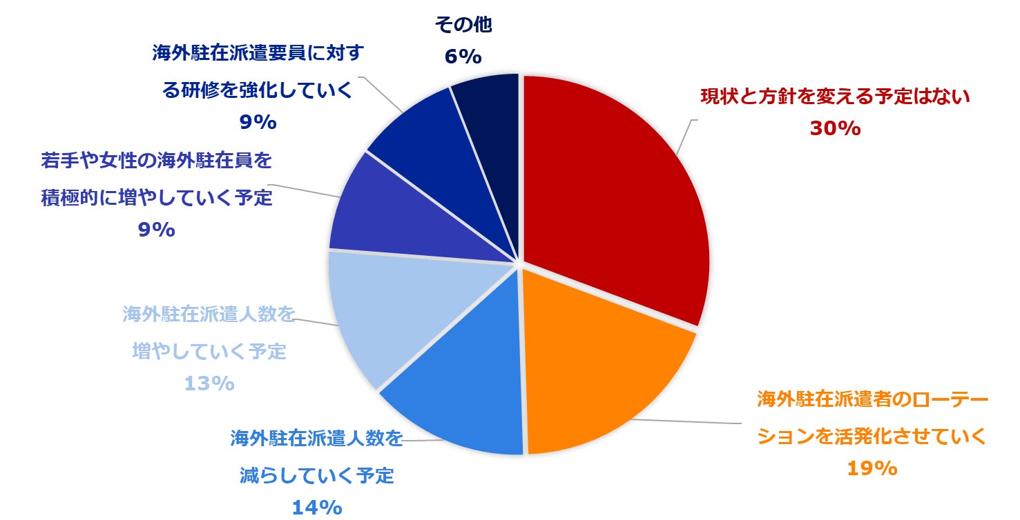 海外駐在員の派遣に対して「現状と方針を変える予定はない」としている企業は、全体の約3割