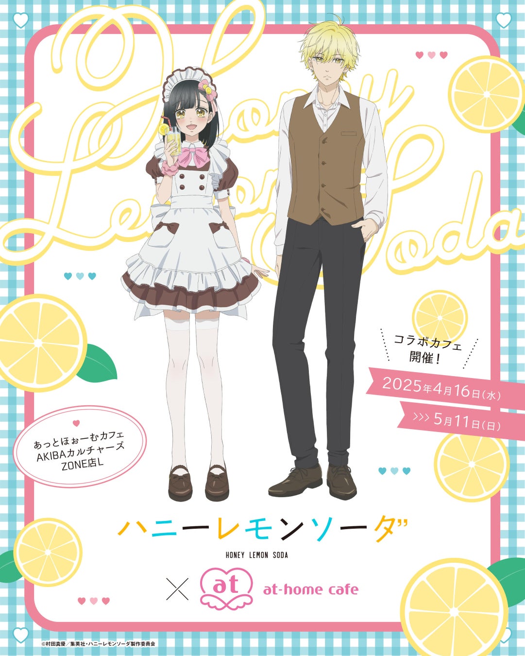 インフィニア株式会社(東京都千代田区、代表取締役:深沢孝樹)が運営する秋葉原のメイドカフェ「あっとほぉーむカフェ」は、2025年4月16日(水)~5月11日(日)まで、あっとほぉーむカフェ AKIBAカルチャーズZONE店LにてTVアニメ「ハニーレモンソーダ」とコラボレーションカフェを開催します。