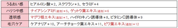 ①「6つのめぐりケア*成分」*角質層まで
