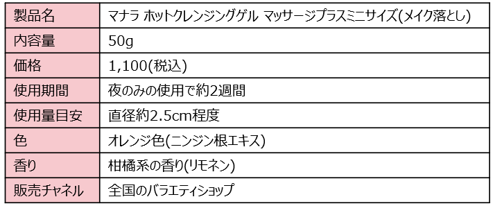 オリジナルブランド「マナラ化粧品」の開発及び販売を行う、株式会社ランクアップ(本社:東京都中央区銀座 代表:岩崎 裕美子)は、累計販売本数1700万本*1を突破したマナラ〈ホットクレンジングゲル マッサージプラス〉のミニサイズ(50g)を限定パッケージで、2022年1月20日頃より全国のバラエティショップ等で発売を開始します。今だけの限定パッケージです。ぜひ、この機会に店頭にてお買い求めください。 *1:2021年6月時点