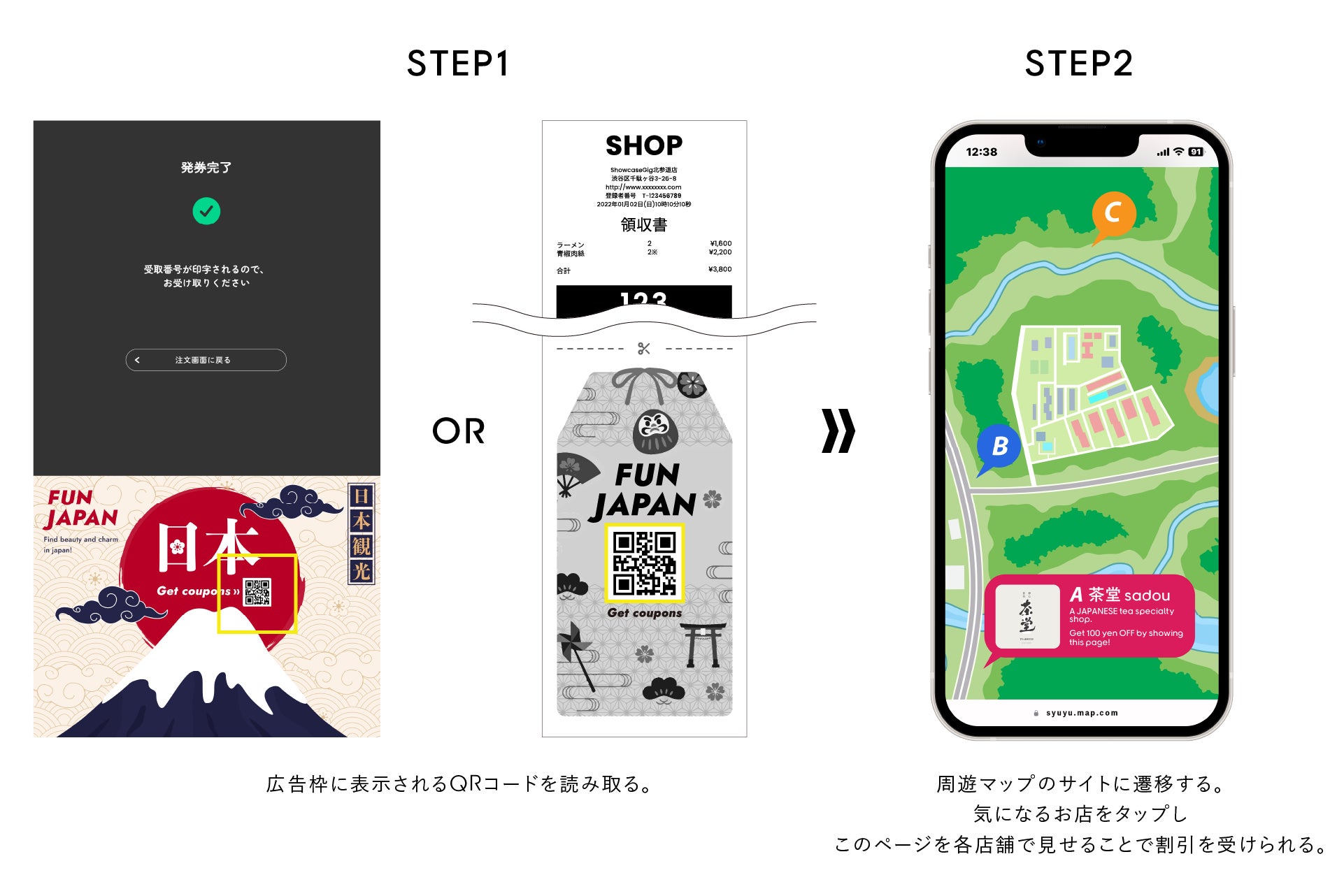 さらに新機能として、FGKの発券完了画面およびレシートに、店舗周辺の商業施設や観光スポットをおすすめするサジェスト機能※も搭載。インバウンドが日本での滞在中に必ずと言っていいほど訪れる飲食店を起点として、新たな消費のサイクルを生み出すことが可能です。※周辺店舗と連携したクーポンやマップなど。今後提供予定