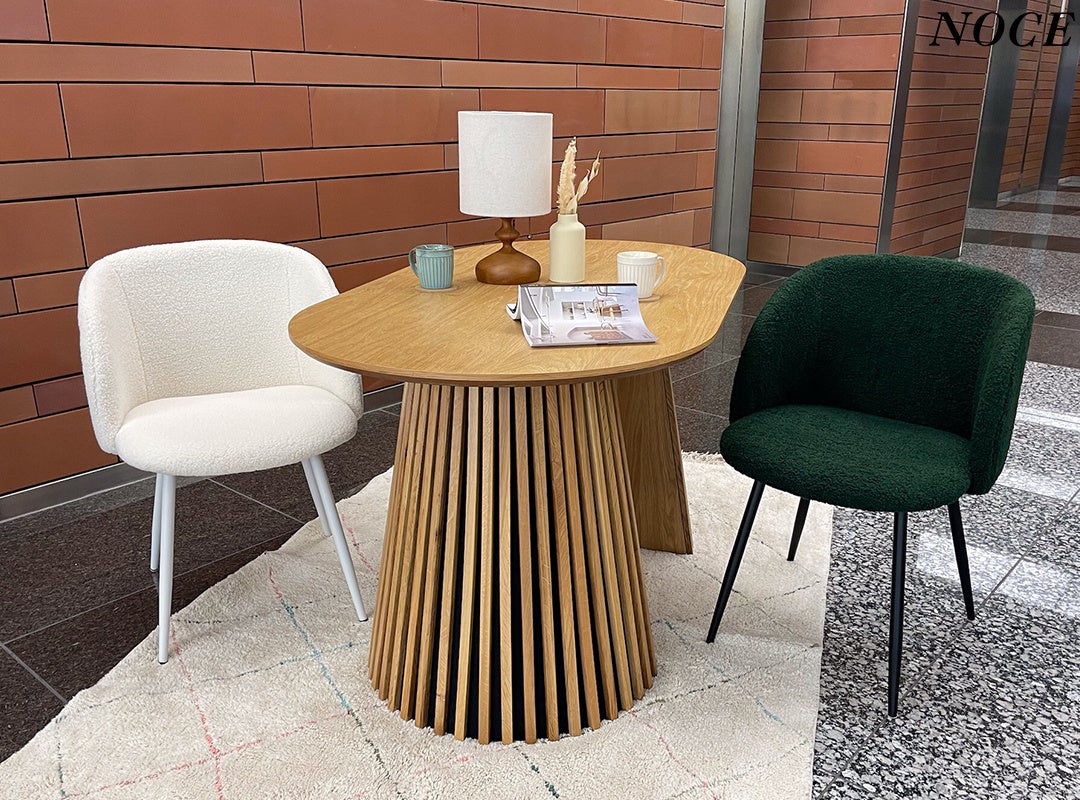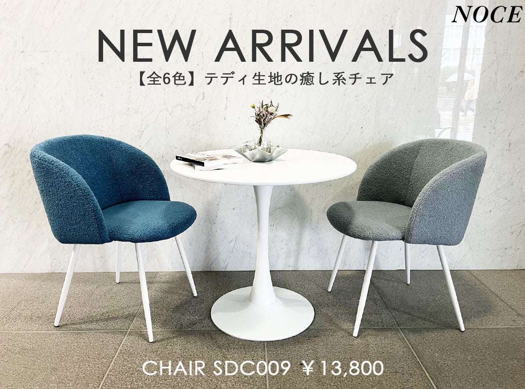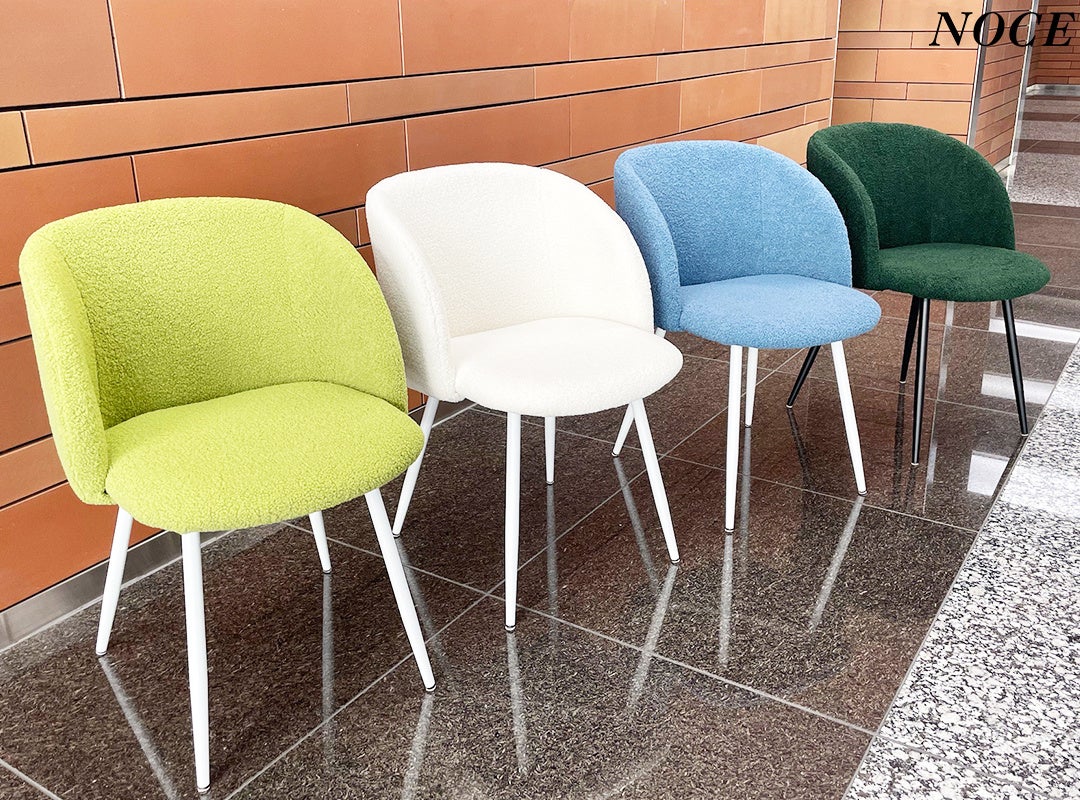 トレンドのモコモコとした質感がかわいいファブリックを使用したチェアSDC009。その包まれるような座り心地は日々の暮らしに癒しのひと時を与えます。全6色展開で、かわいらしさだけでなく、上品さもお選びいただける、NOCEの新商品チェアです。