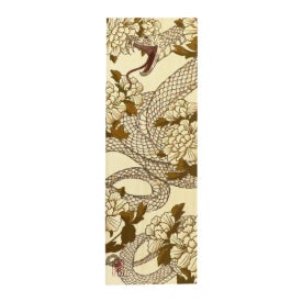 蛇は脱皮を繰り返して成長していく生き物であることから、生命力を象徴する縁起のいい生き物として知られています。そんな蛇の中でも金運を司る白い蛇と、百花の王とも呼ばれ「幸福」が花言葉の牡丹の花をデザインし、華やかに仕上げました。