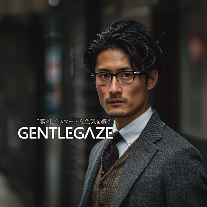 40歳以上ミドル世代の男性向け、オリジナルブランド「ジェントルゲイズ(GENTLEGAZE)」。厚みのあるアセテートやジュラルミン素材を大胆に採用したラインアップで、力強く印象的な目元を演出し、加齢による印象の変化に悩むミドル世代の魅力を引き立てます。