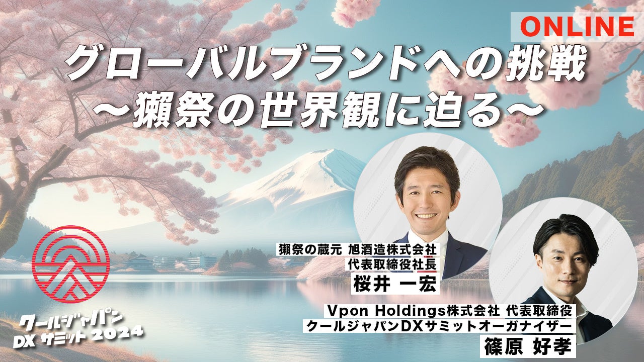 日本の魅力をデータ&デジタルの力で世界へ届けるVpon JAPAN株式会社(本社:東京都新宿区、代表取締役社長/クールジャパンDXサミットオーガナイザー:篠原 好孝、以下Vpon JAPAN)は、「クールジャパンDXサミット2024 グローバルブランドへの挑戦 〜獺祭の世界観に迫る〜」と題し、オンライン特別対談を配信することをお知らせいたします。