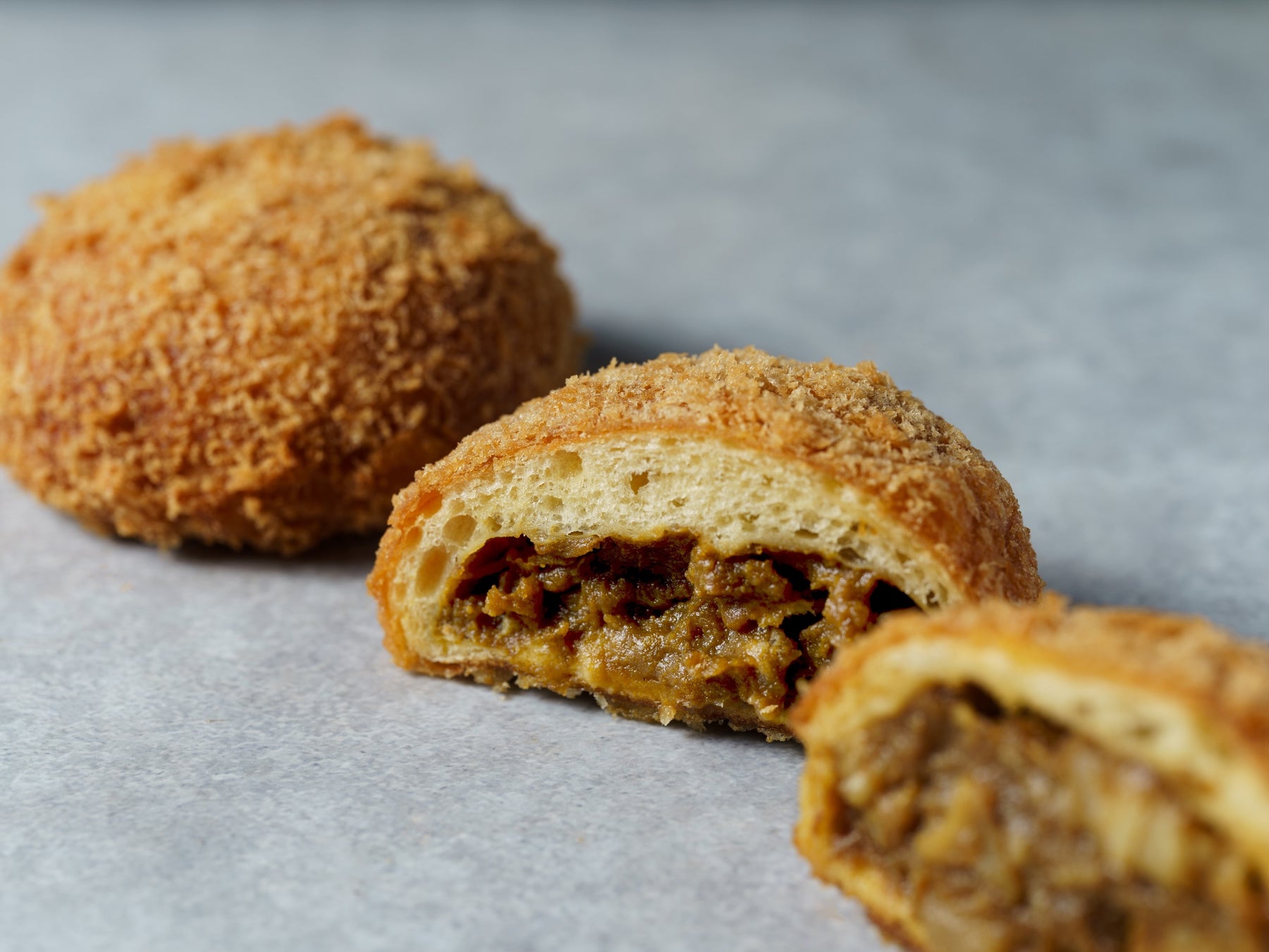 柔らかく煮込んだ牛すじがごろっと入ったホテルシェフの手作りカレーを、サクッとカリッとした食感の生地で包み込みました。