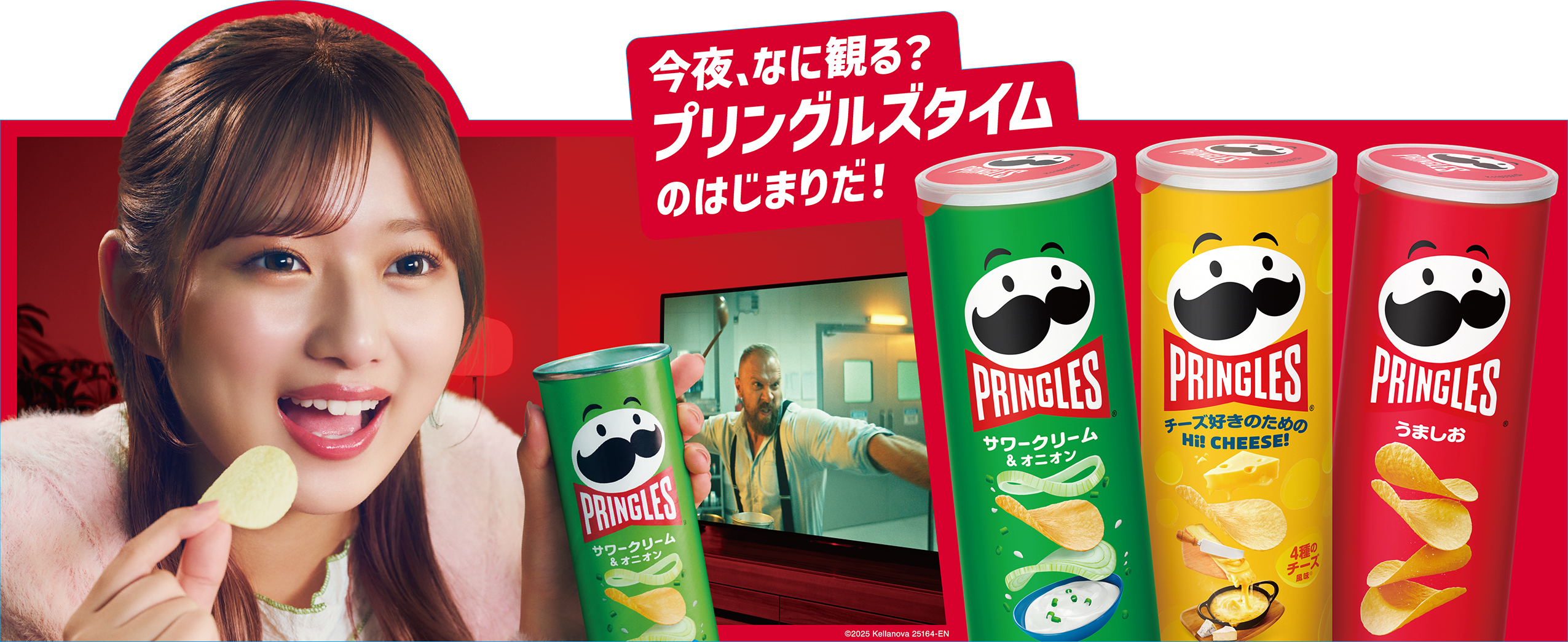 希空さんは、ティーンを中心に幅広い世代から支持を集め、SNSを通じて希空さんの魅力を発信し続けています。プリングルズは、あそび心や好奇心をくすぐることをブランドの使命としており、希空さんこそが、「日常のひと時をプリングルズがもっと楽しくしたい」という想いを等身大で表現できる存在だと考え、今回の起用に至りました。部屋着姿でくつろぎながら、プリングルズと一緒にドラマや映画を楽しむ希空さんの新キービジュアルは9月下旬より店頭で順次展開します。今後希空さんが店頭やSNSでプリングルズを応援していきます。