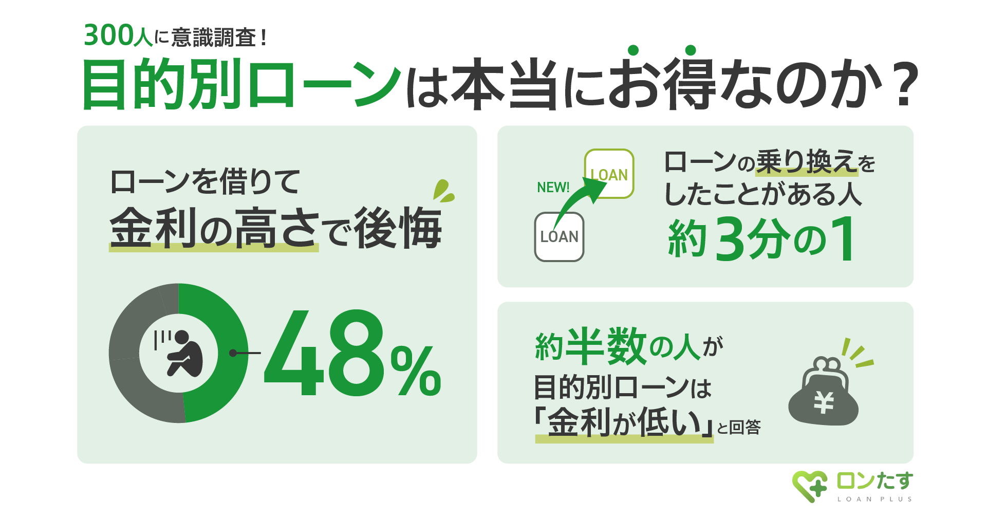 ローンユーザー300人に調査!目的別ローンは本当にお得なのか?自分が組んだローンは満足?金利の低さを実感しているのは約半数