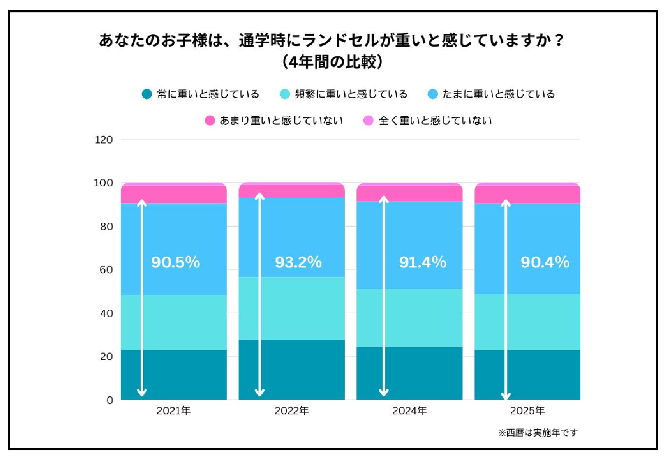 平均は4.13kg→3.94kgで2年連続の減少、それでも“重い”と感じる子どもは9割超.~買い替え検討の家庭も増加、過去最多に~