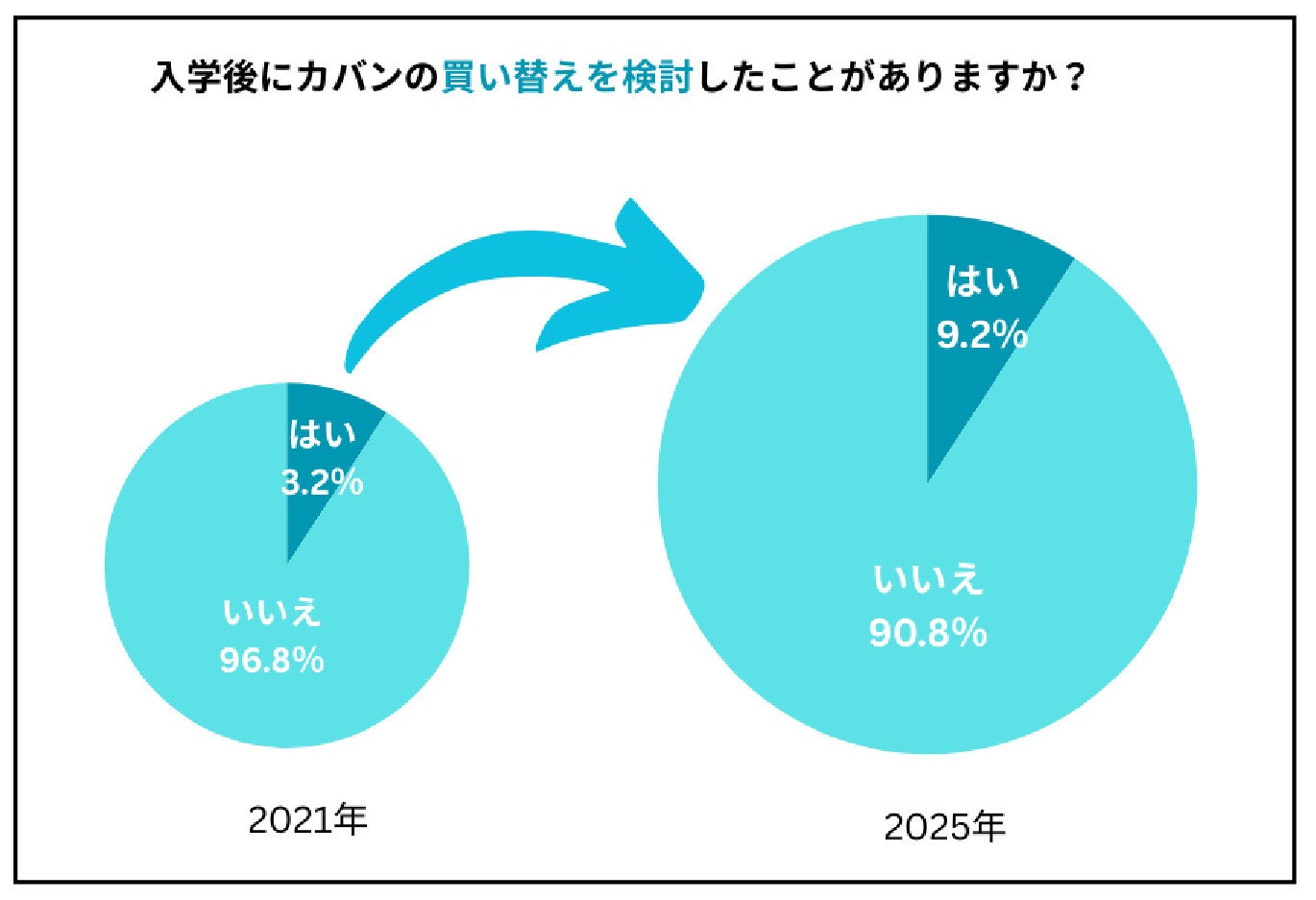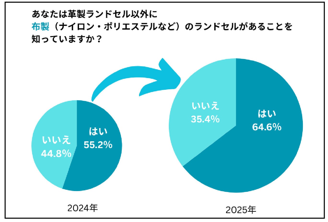 選択肢の多様化:買い替え検討は過去最大。前年比120%、2021年比で約3倍に。布製ランドセルの認知も増