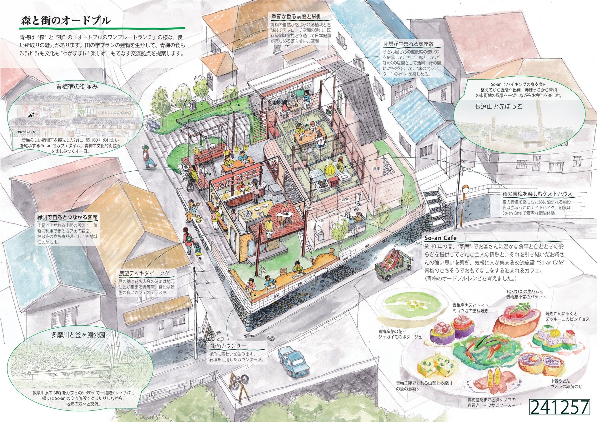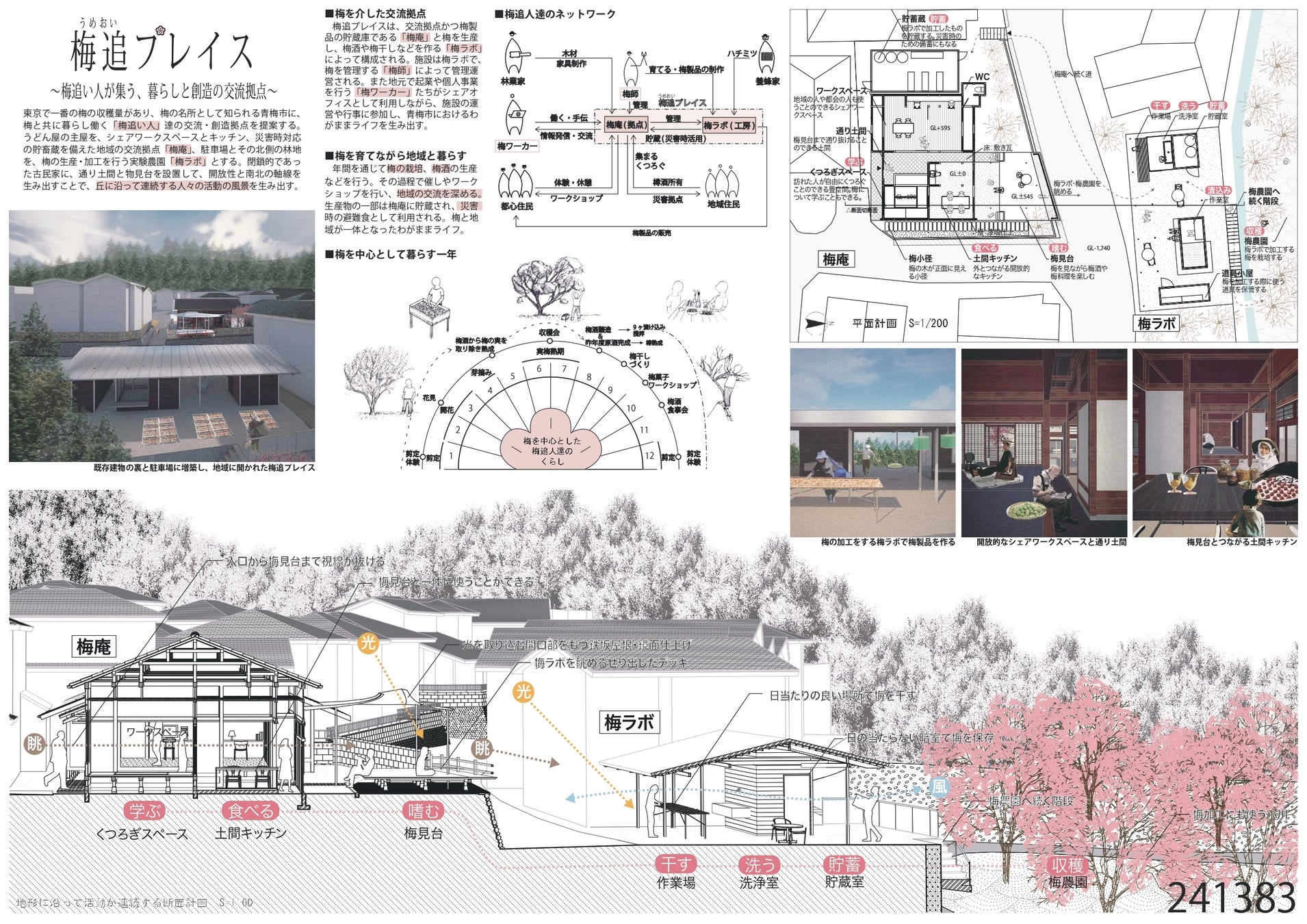 空き家の有効活用における課題である継続性に焦点を当て、青梅の伝統的な行事である梅仕事と結びつけた点が、審査員から高く評価されました。梅仕事という地域に根付いた文化を核とすることで、持続的な交流拠点としての可能性が期待でき、受賞となりました。